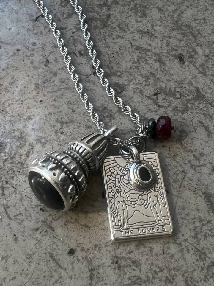 Χειροποίητο κολιέ γούρι δίχρωμο.