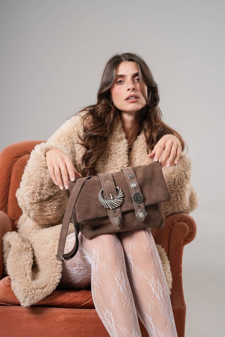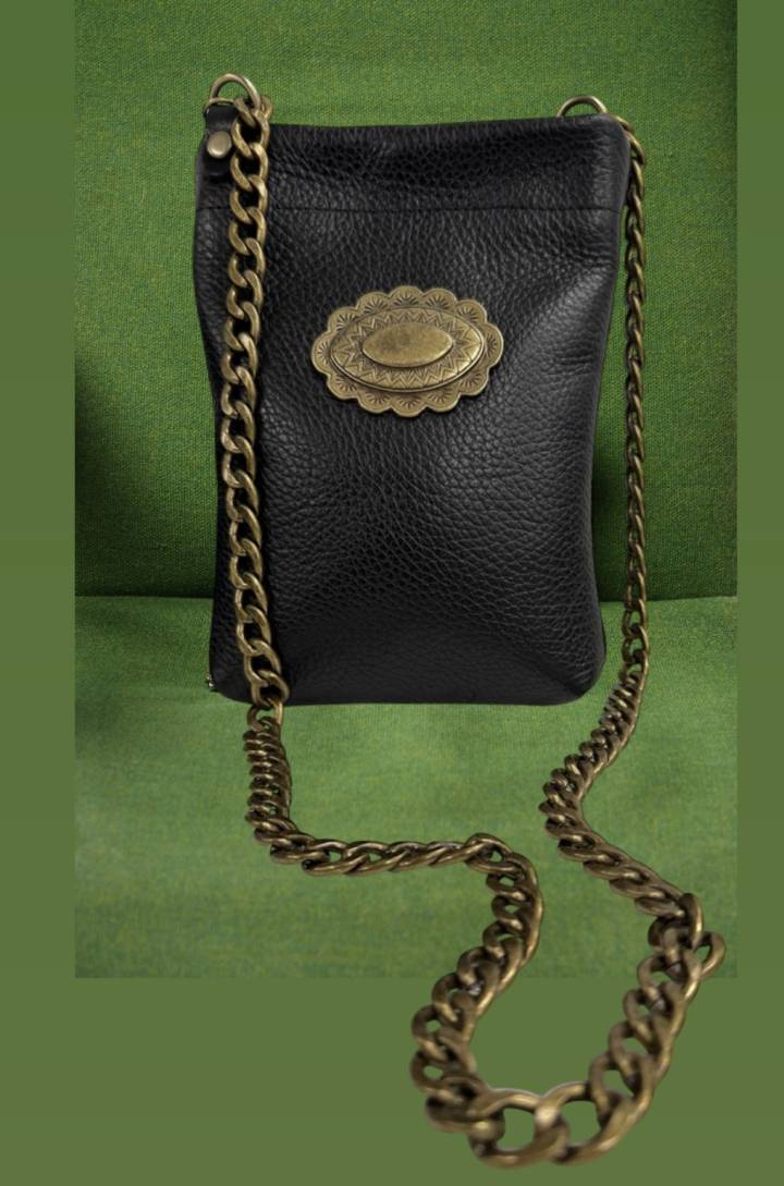 Δερμάτινο χειροποίητο τσαντάκι με μεταλλικά αξεσουάρ.