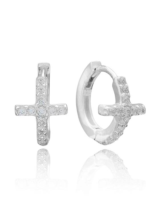FJ SILVER CROSS HOOP SILVER EARRINGS