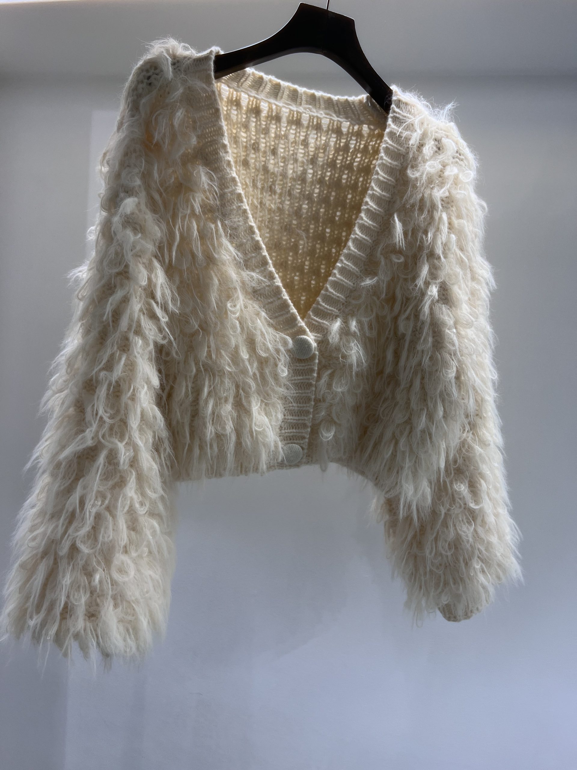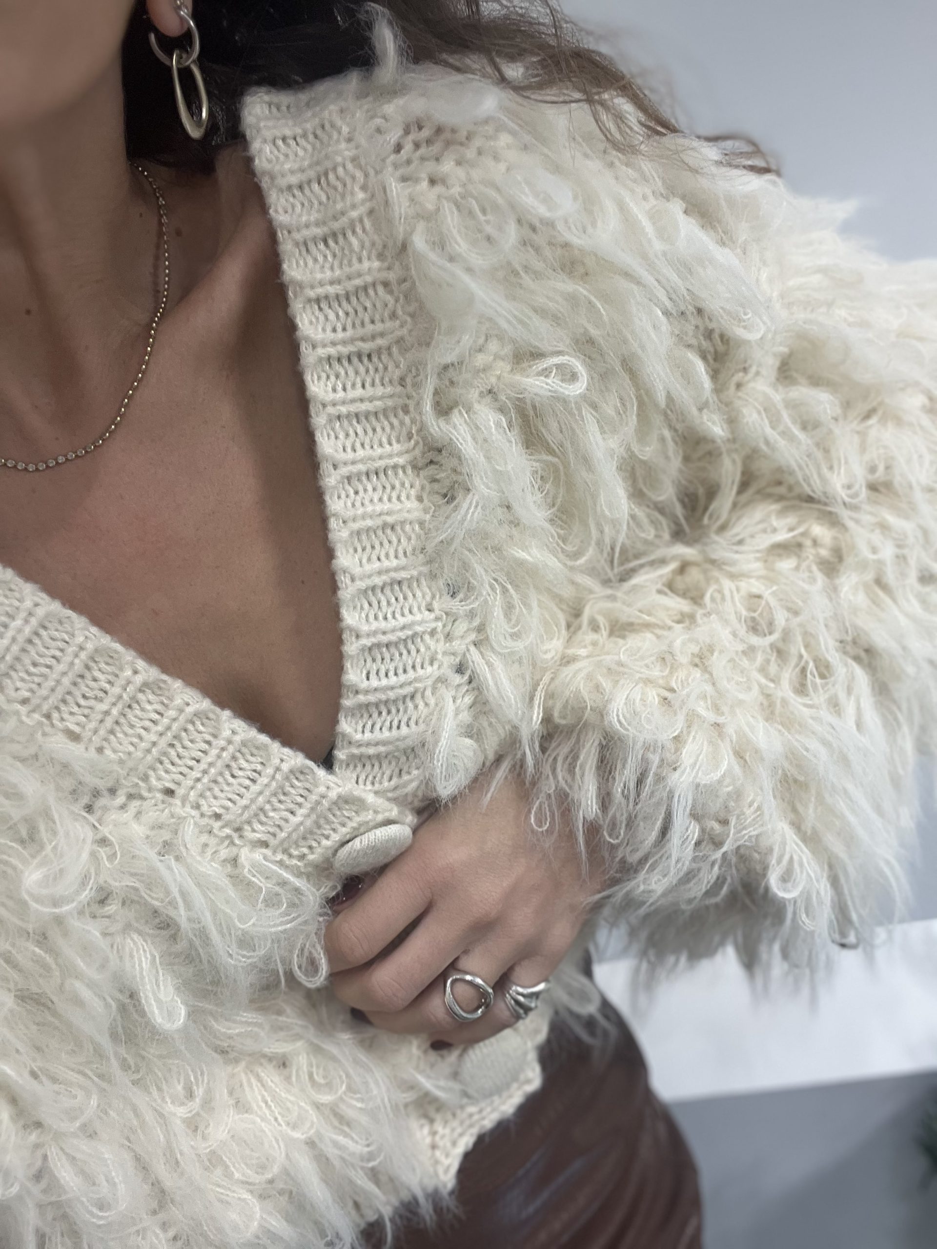 Εντυπωσιακή ζακέτα χνουδωτη, με πλεκτά κουμπια. έρχεται στο ύψος της μέσης είναι oversised τα μανίκια μέγεθος One size