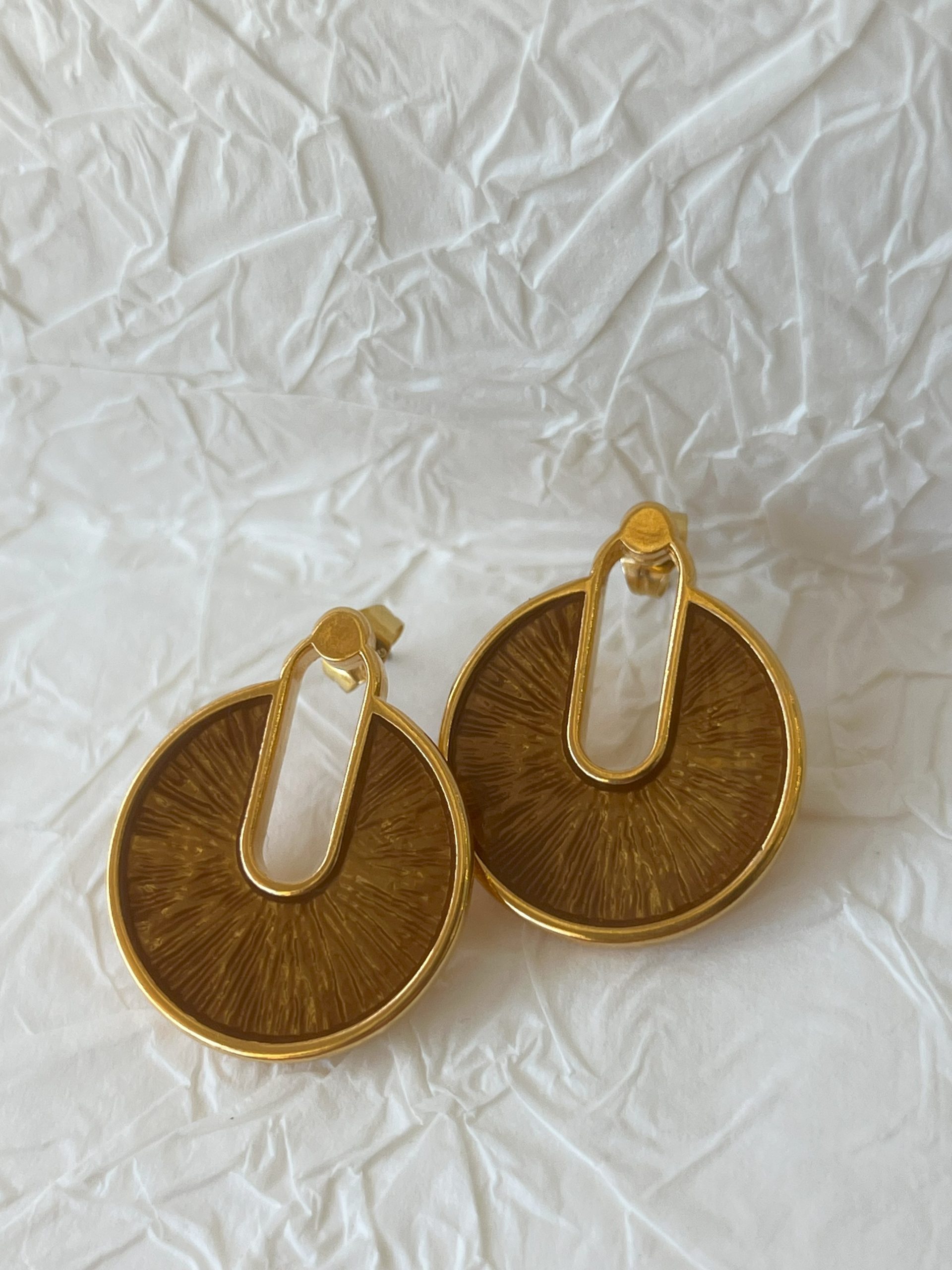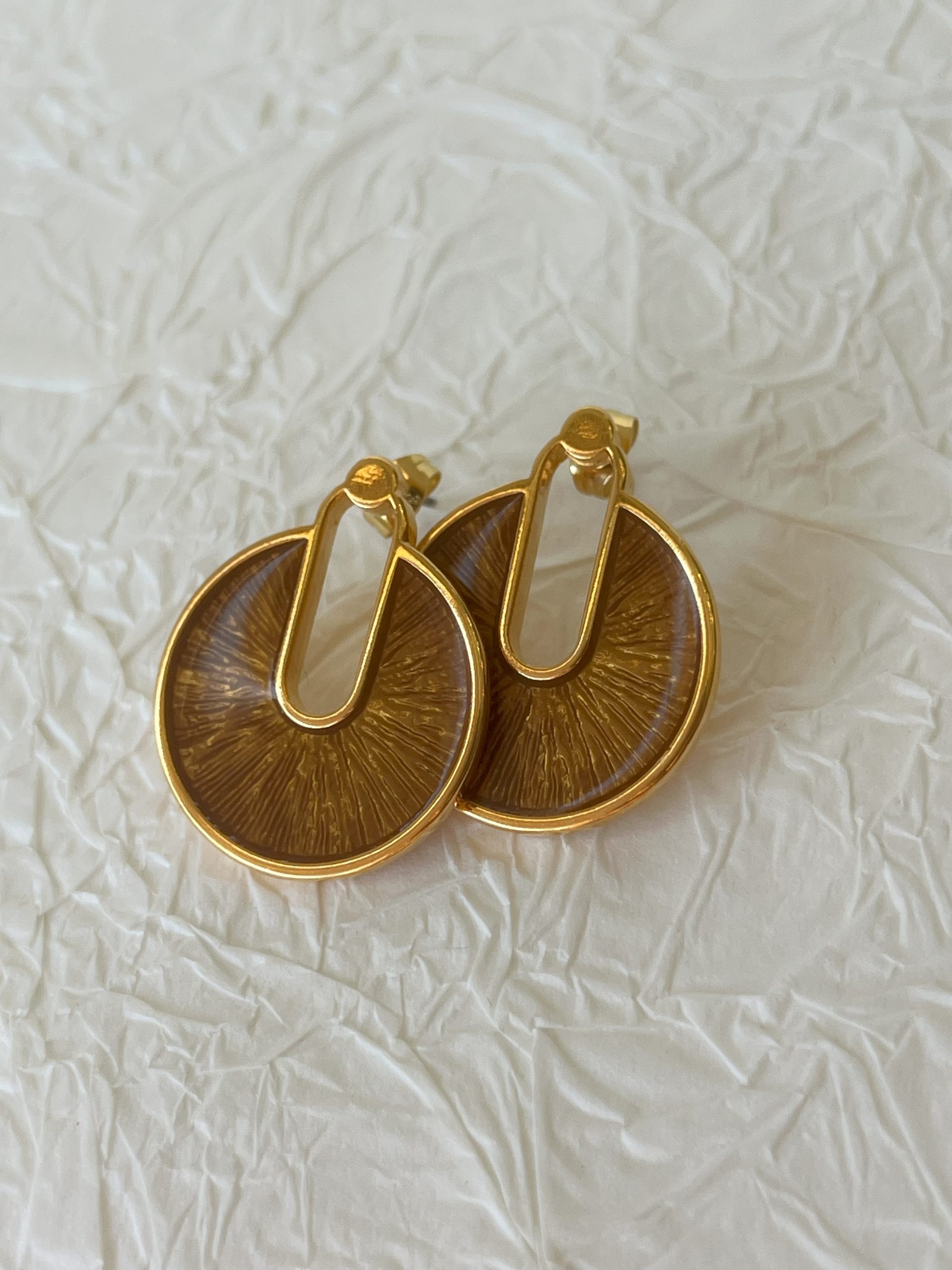 Χειροποίητα σκουλαρίκια απο ορείχαλκο και υγρό γυαλί.