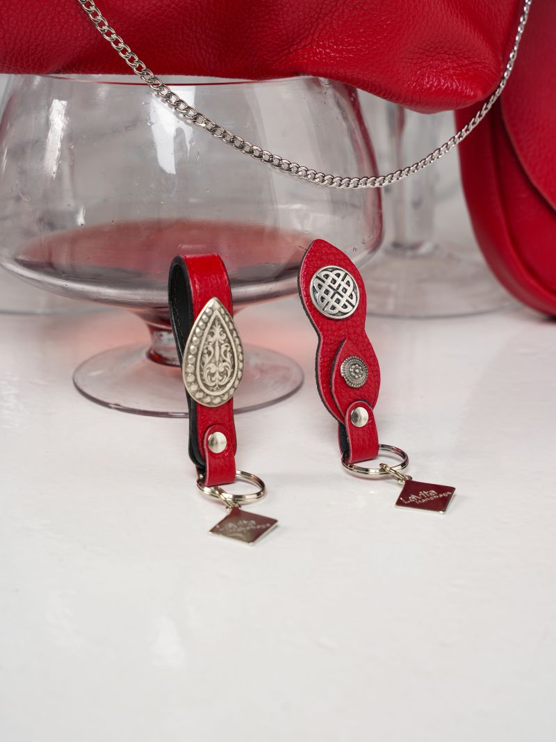 Χειροποίητο δερμάτινο μπρελόκ με μεταλλικά αξεσουάρ.