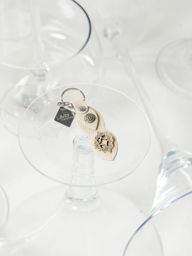 Χειροποίητο δερμάτινο μπρελόκ με μεταλλικά αξεσουάρ.