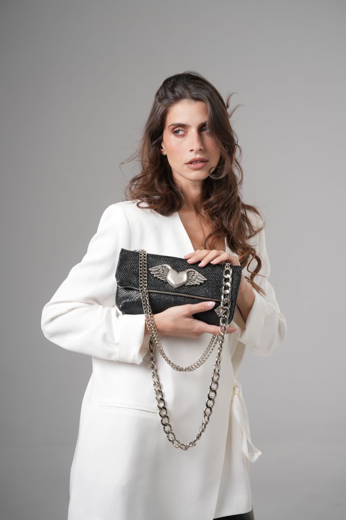 Οι διακοσμητικές αλυσίδες μπορούν να την μετατρέψουν σε τσάντα ώμου.