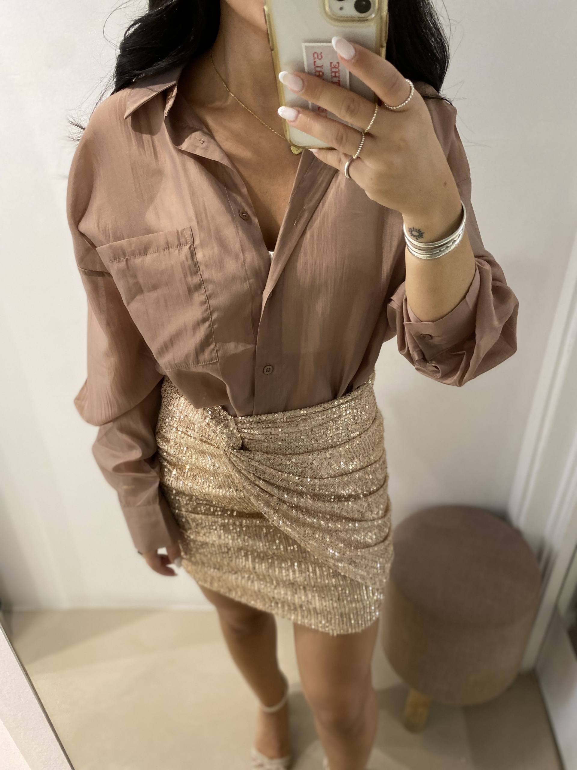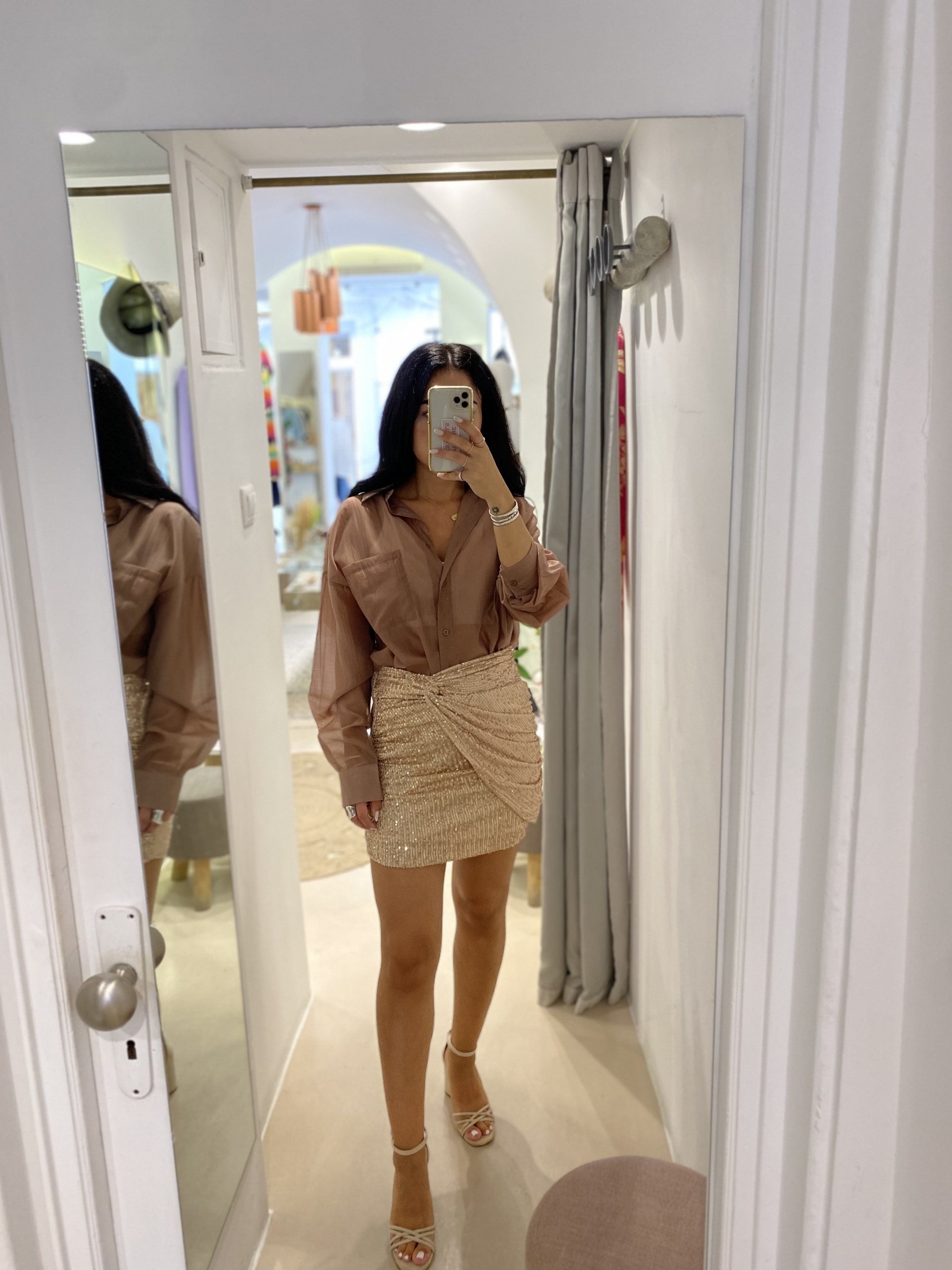 Ψηλόμεση φούστα.Κλείσιμο στο πίσω μέρος με κρυφό φερμουάρ στη ραφή.