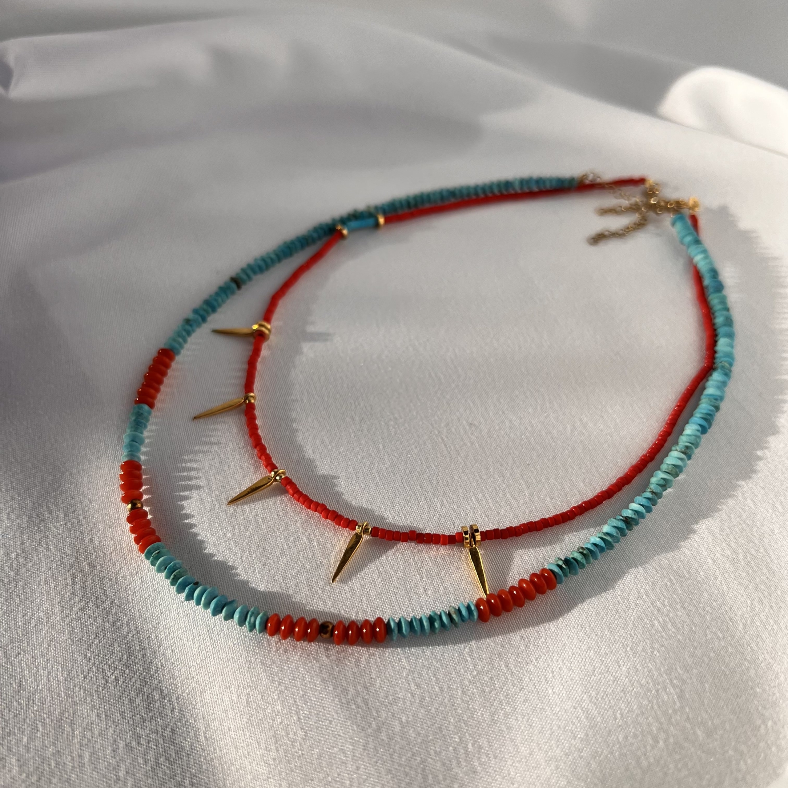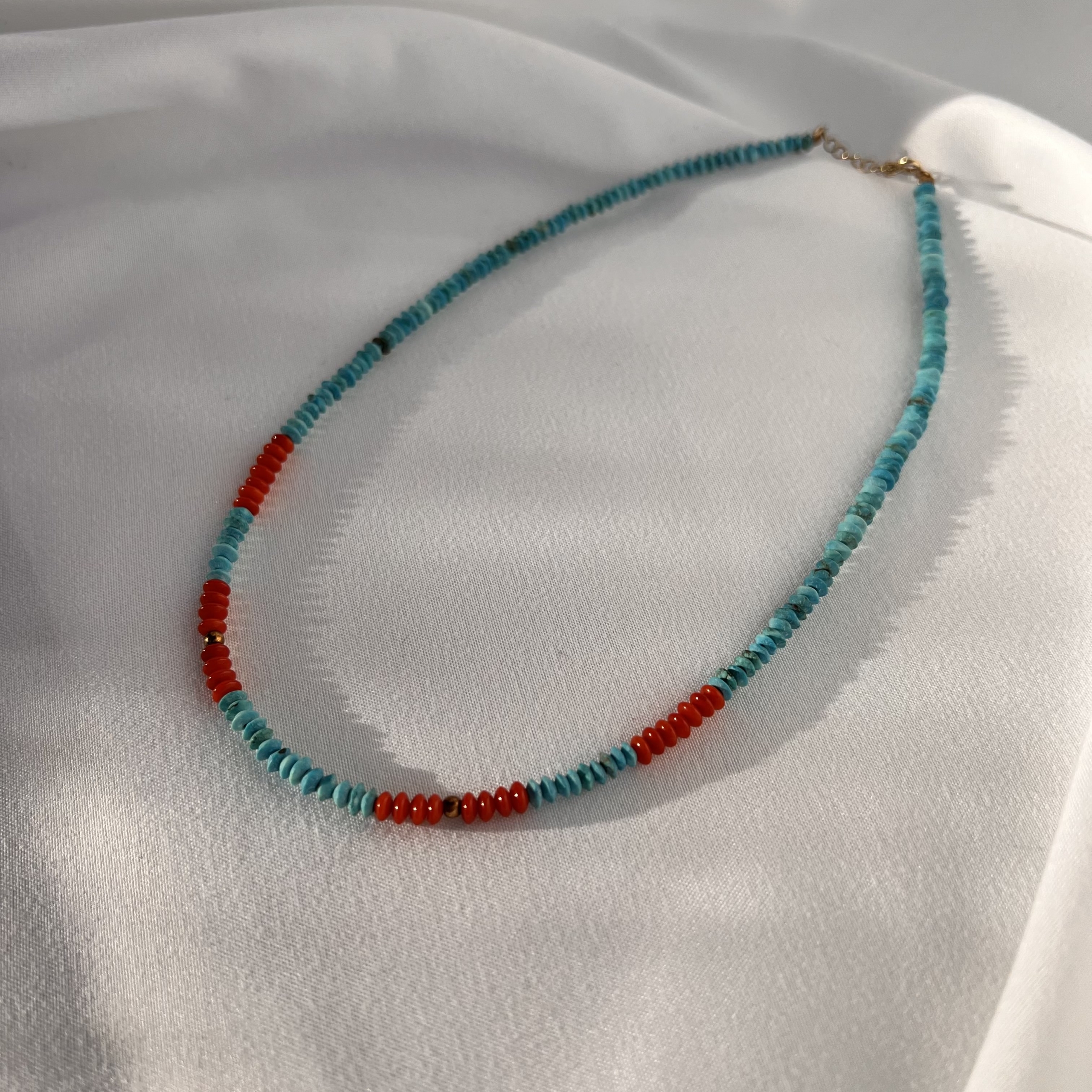 Χειροποίητο κολιέ με πέτρες απο τιρκουάζ και κοράλλια. Κούμπωμα απο ασήμι 925*, επίχρυσο.