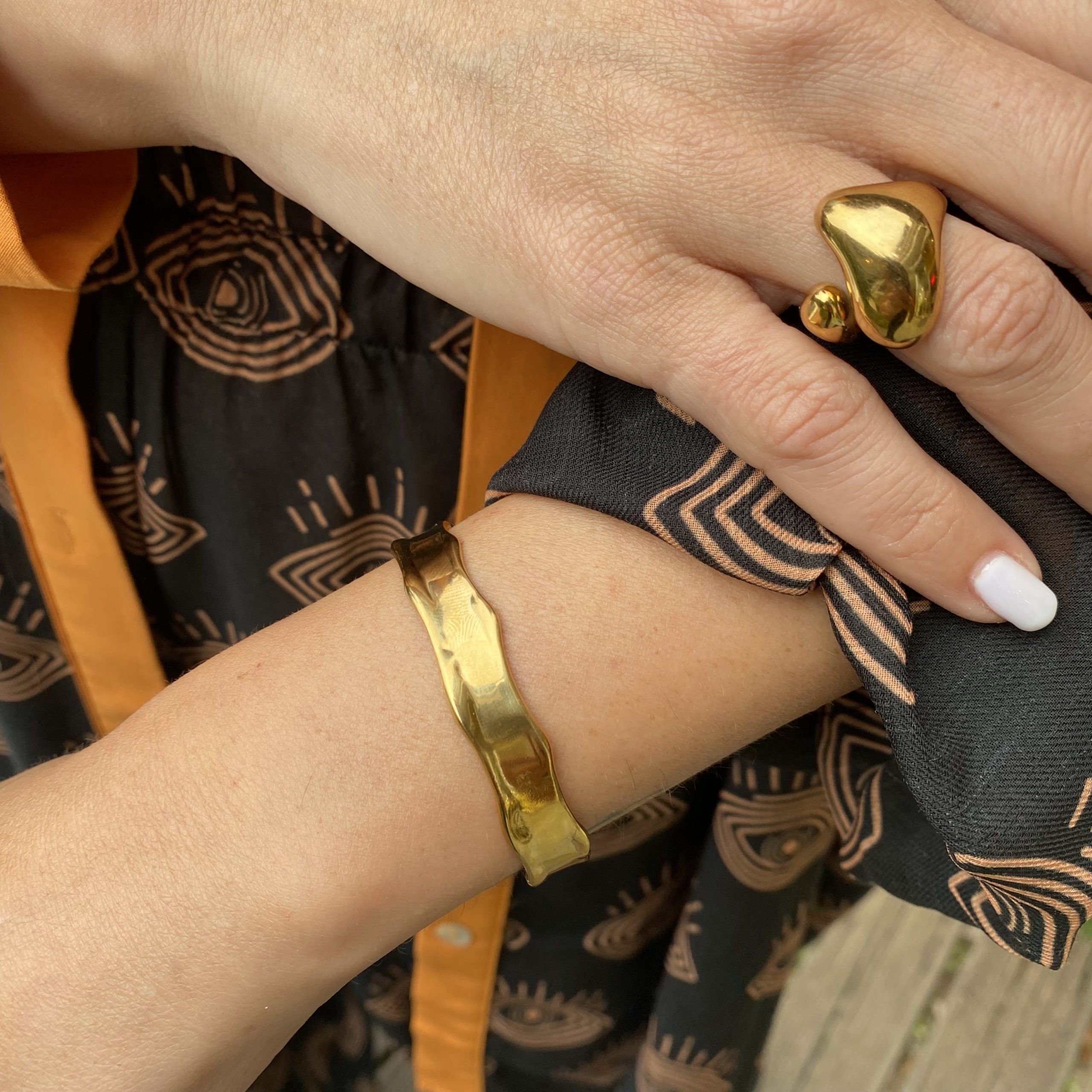 Ατσάλινο φαρδύ βραχιόλι επιχρυσωμένο.