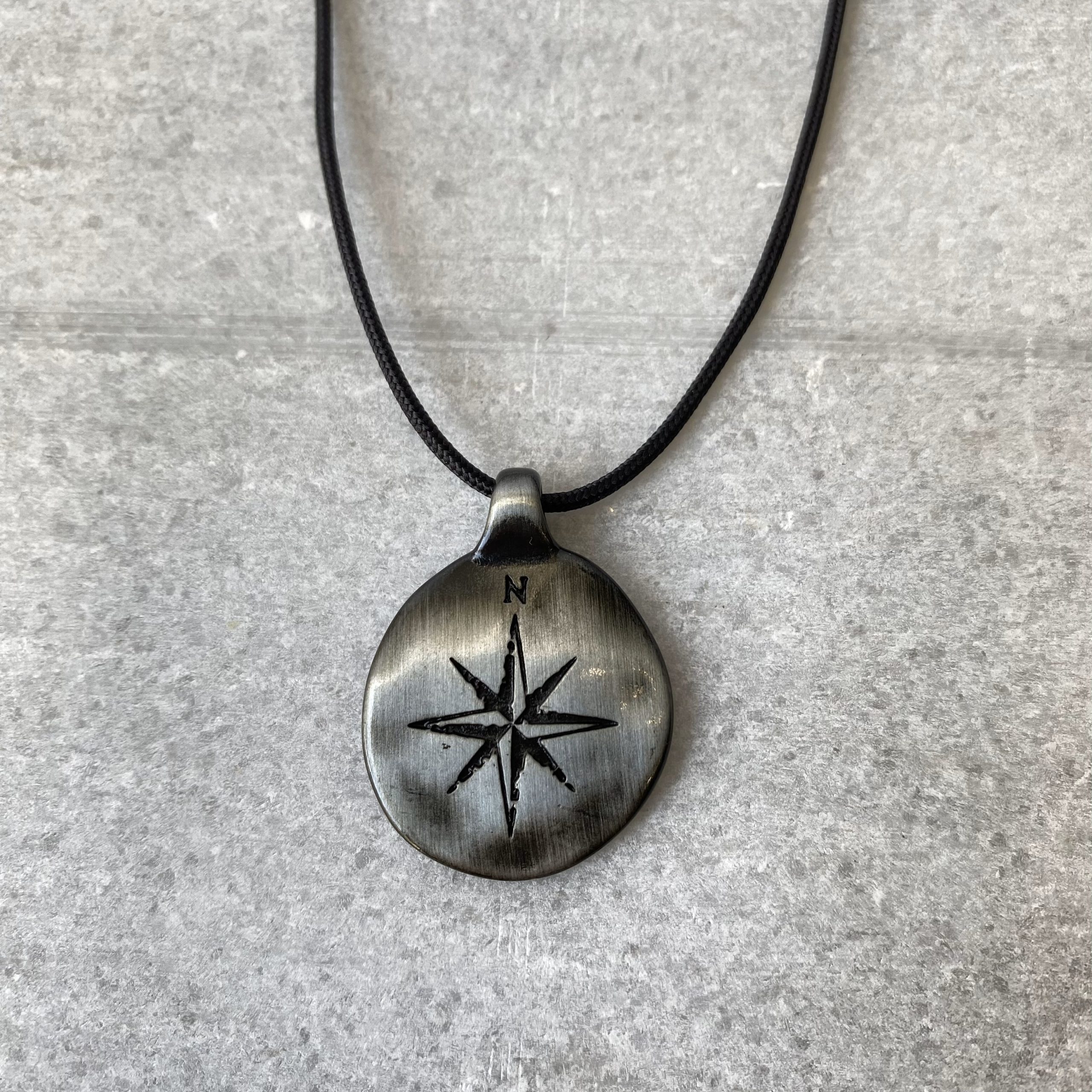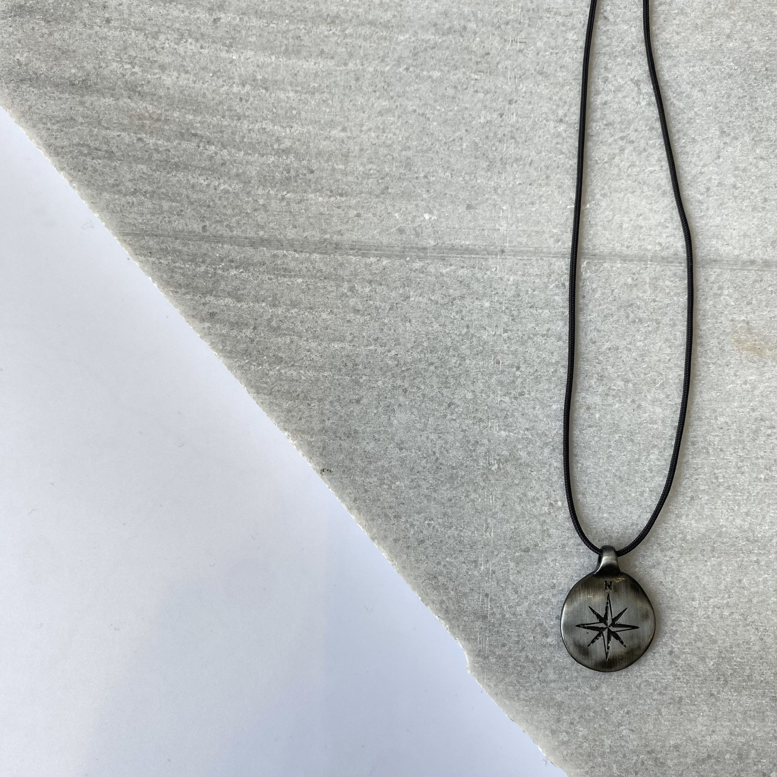 Unisex κολιέ πυξίδα κατασκευασμένο απο οξειδωμένο ορείχαλκο με κορδόνι που αυξομειώνει.