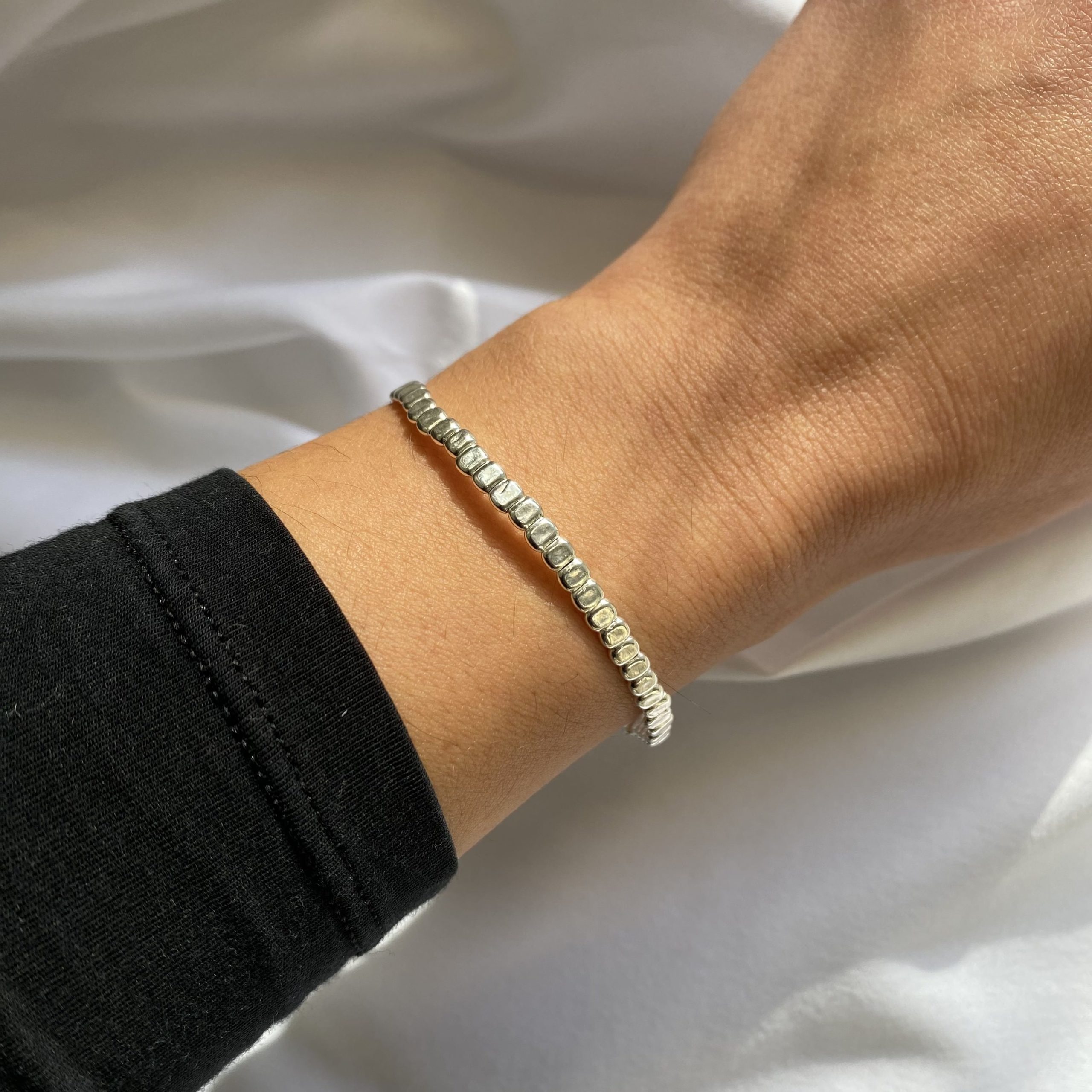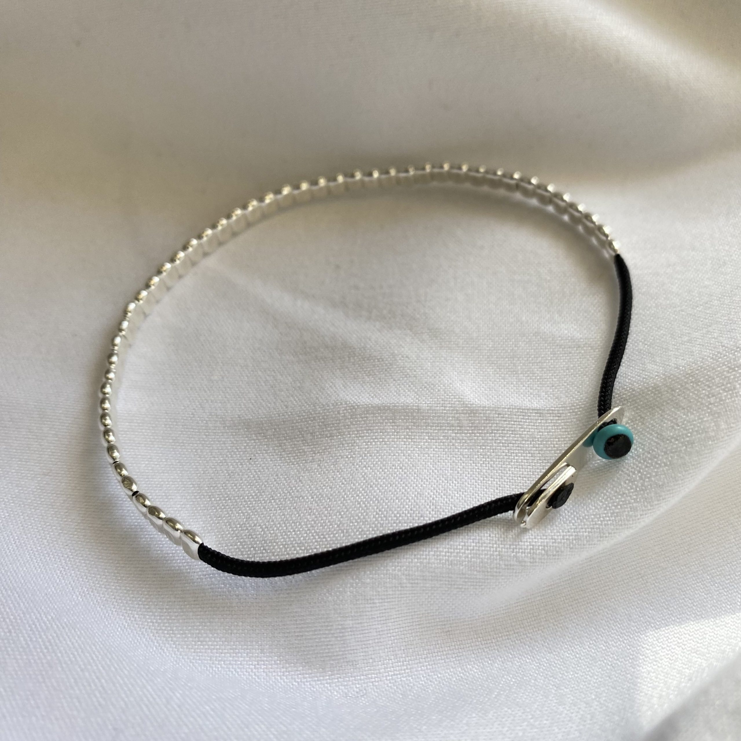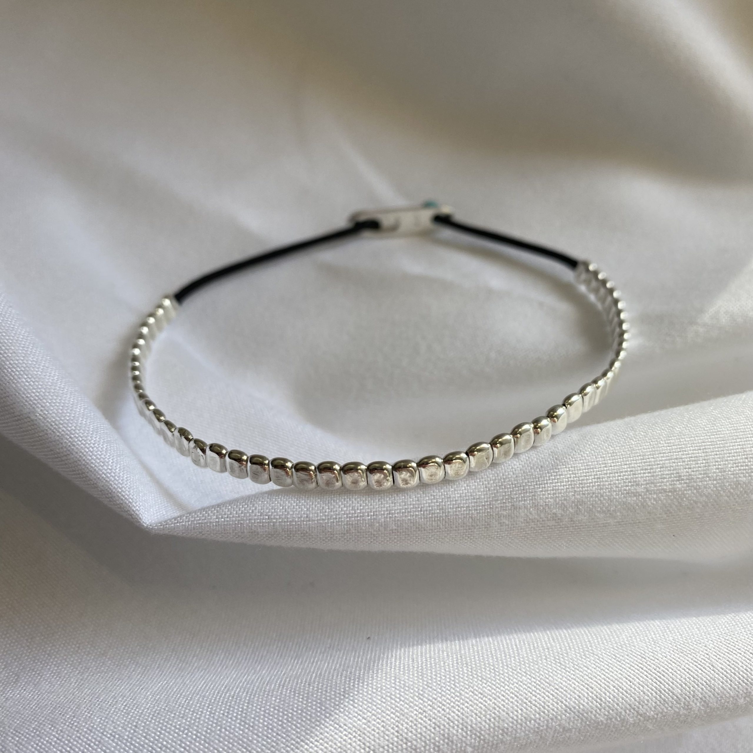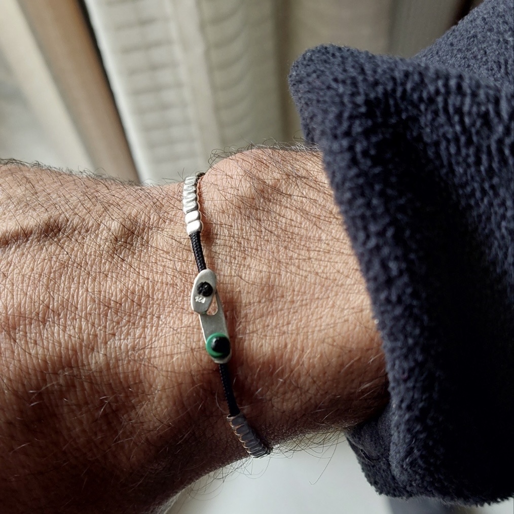 Χειροποίητο πολλαπλό αντρικό βραχιόλι με ασημένια στοιχεία 925 και ασημένιο κούμπωμα.