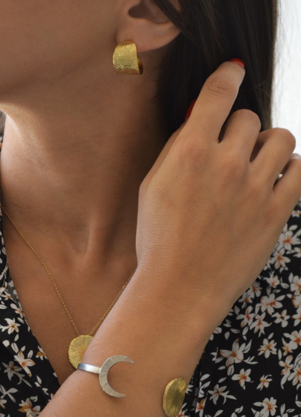 Χειροποίητο ασημένιο σκουλαρίκι επίχρυσο. Διάμετρος κρίκου 2 cm.