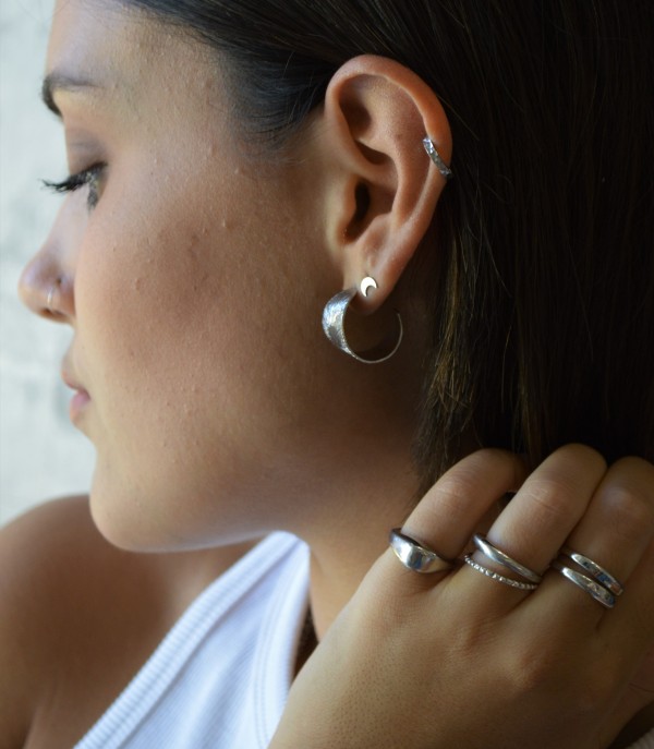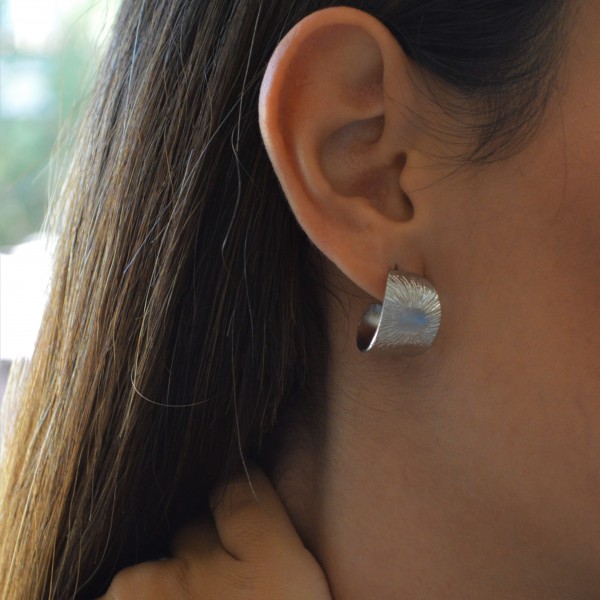 Χειροποίητο ασημένιο σκουλαρίκι. Διάμετρος κρίκου 2 cm.