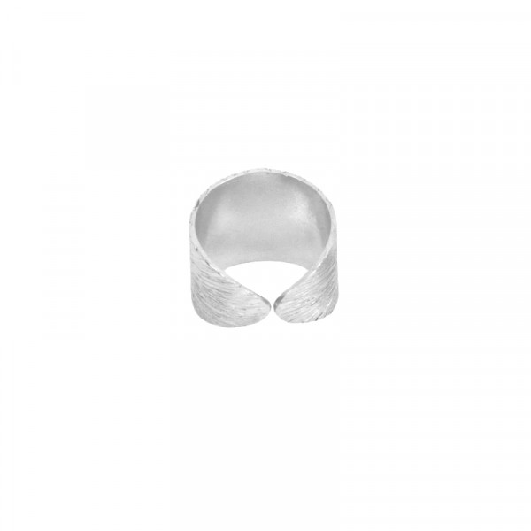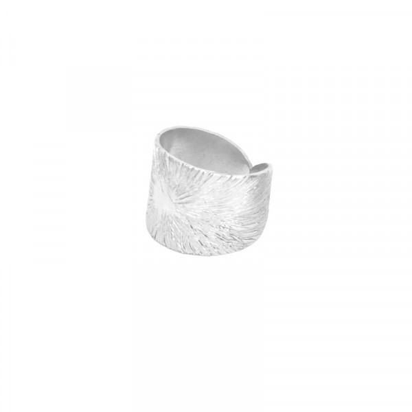 Χειροποίητο ασημένιο (925) δαχτυλίδι σε ιδιαίτερο σχήμα με ανάγλυφες ραβδώσεις, παλλαδιούχο υπόστρωμα με λευκή υποροδίωση (ασήμι).