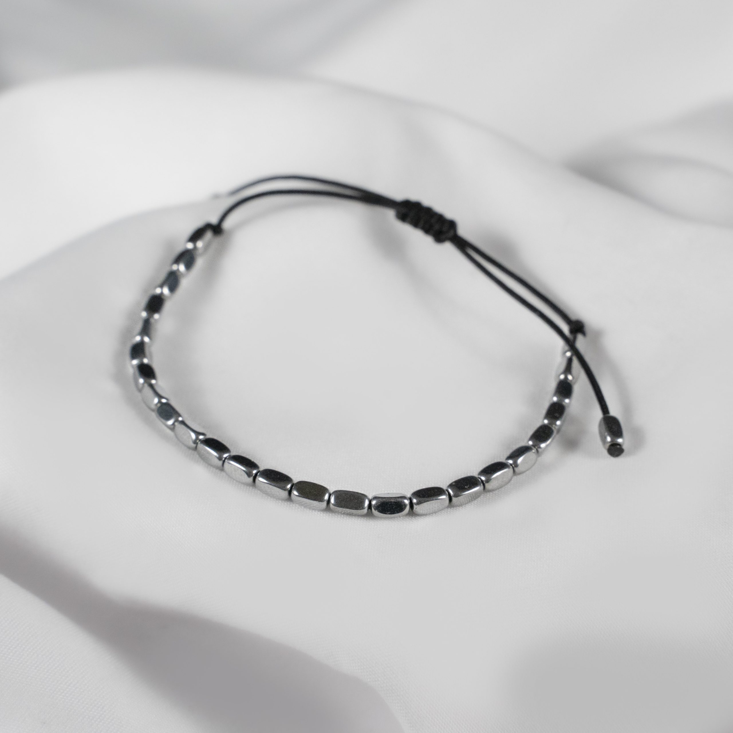 Χειροποίητο unisex βραχιόλι με πέτρες αιματίτη σε ασημί χρώμα.