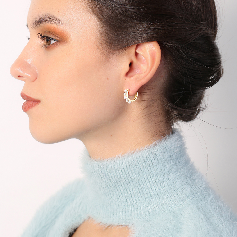 Χειροποίητα κρικάκια απο ασήμι 925* επιχρυσωμένα με λευκές πέρλες.