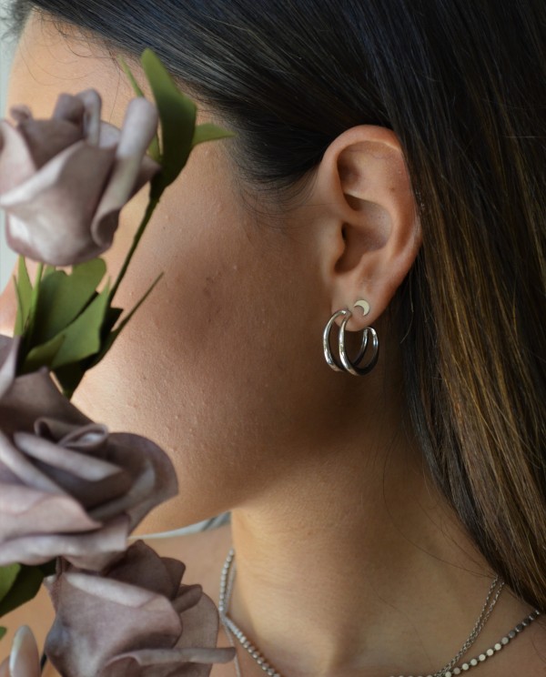 Χειροποίητος ασημένιος διπλός κρίκος. Διάμετρος 2 cm.