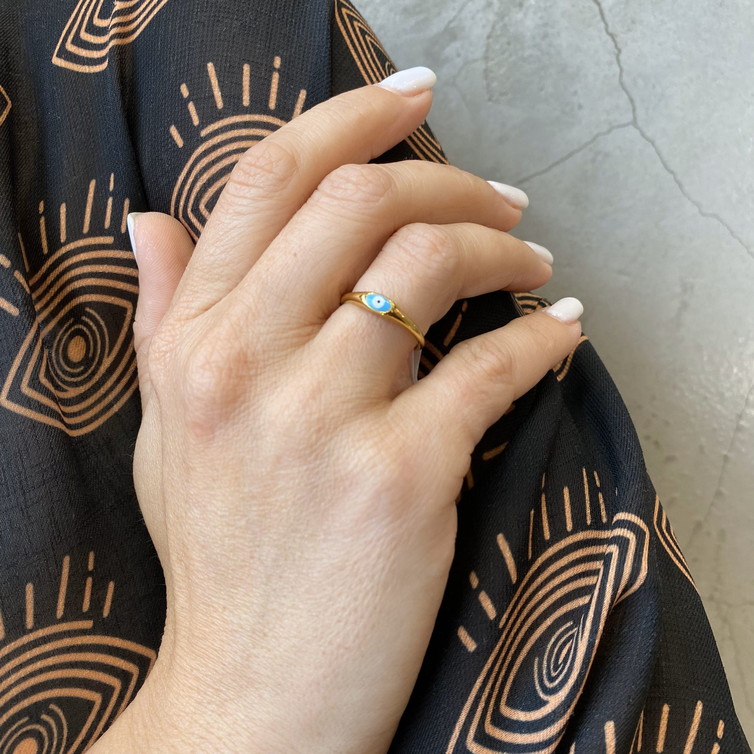 Ατσάλινο δαχτυλίδι με ματάκι απο σμάλτο.