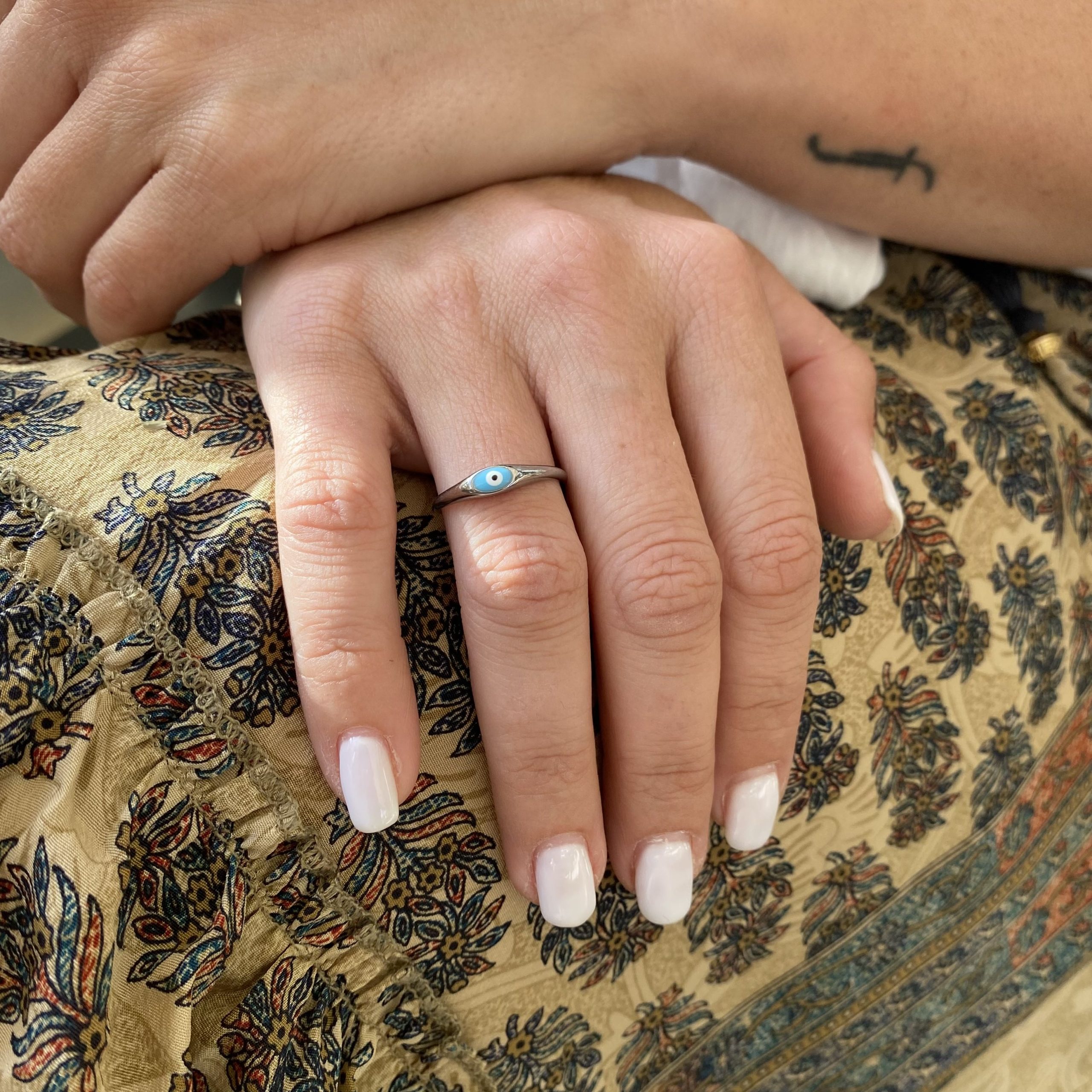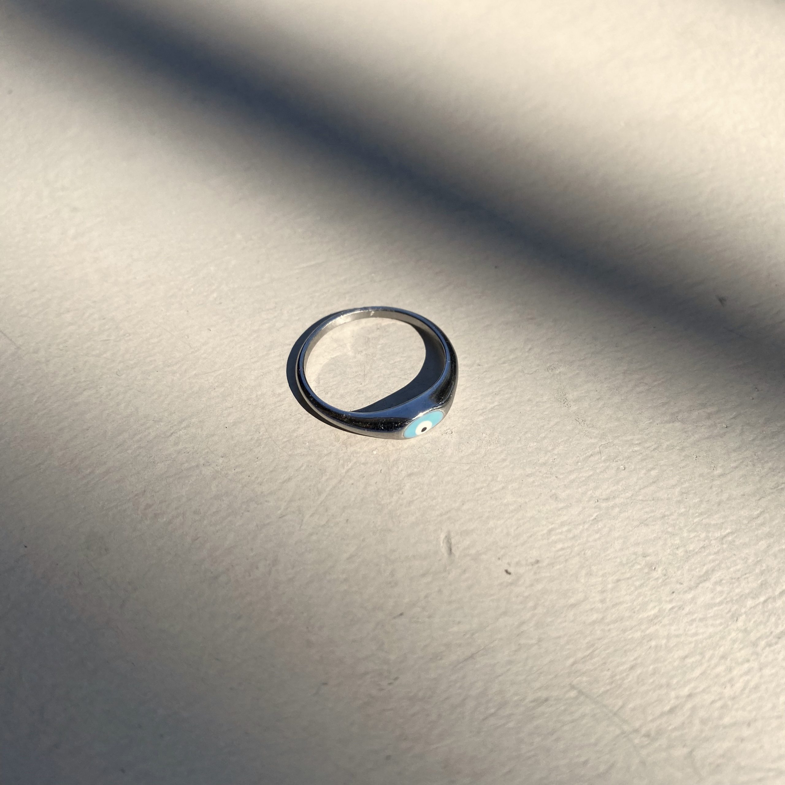 Δαχτυλίδι απο ατσάλι επιπλατινωμένο με ματάκι.