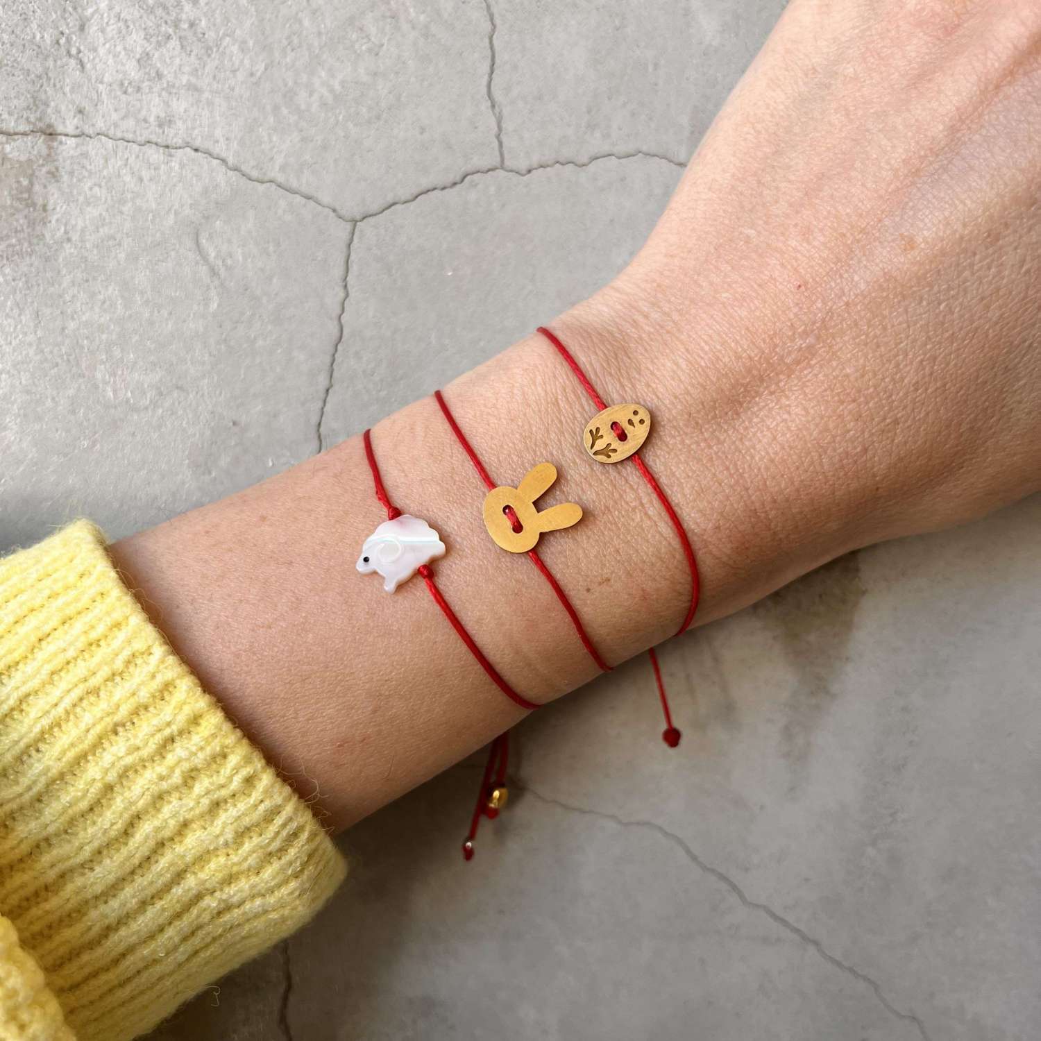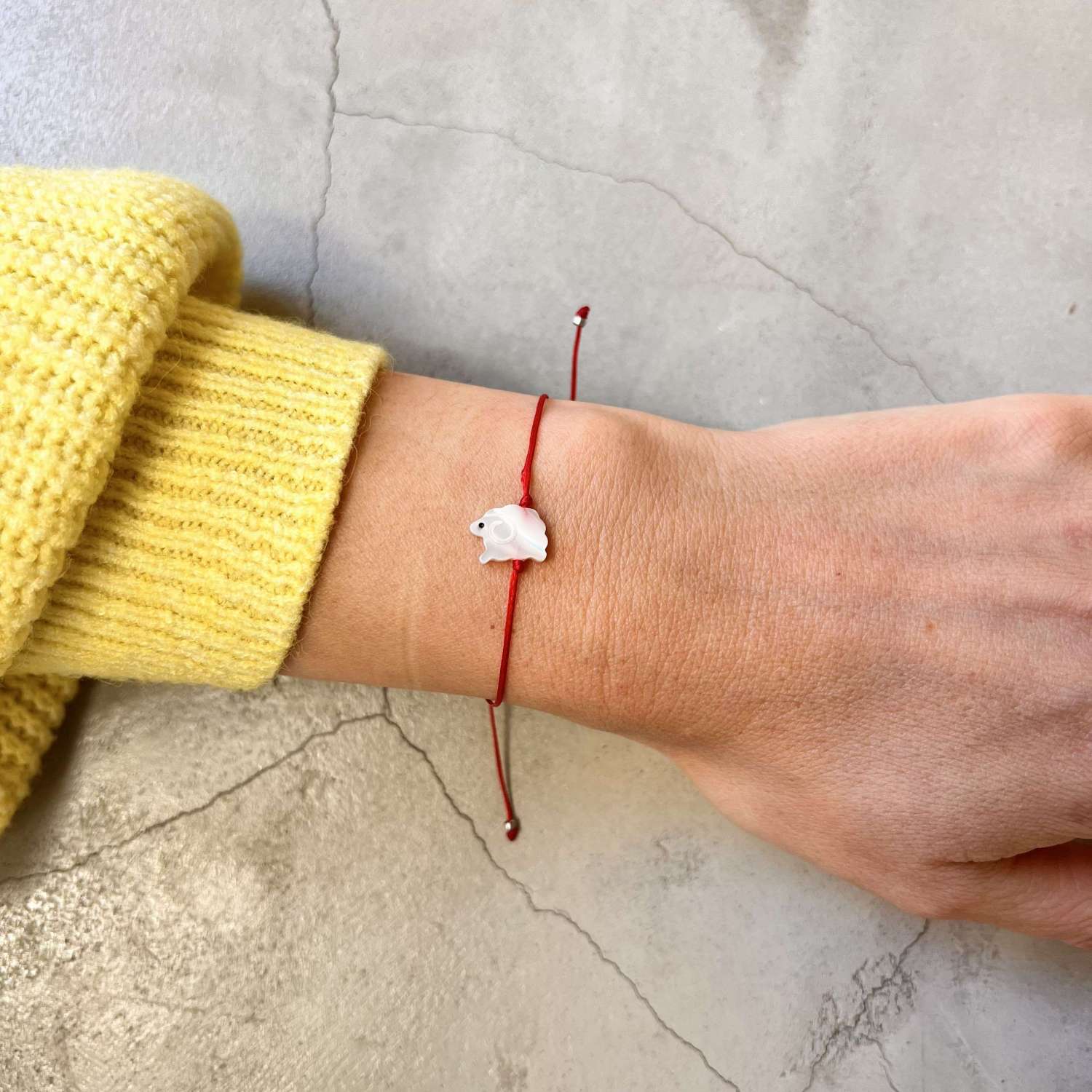 Χειροποίητο βραχιόλι με πρόβατο από φίλντισι και κόκκινο κορδόνι. Κούμπωμα μακραμέ, μέγεθος ρυθμιζόμενο.