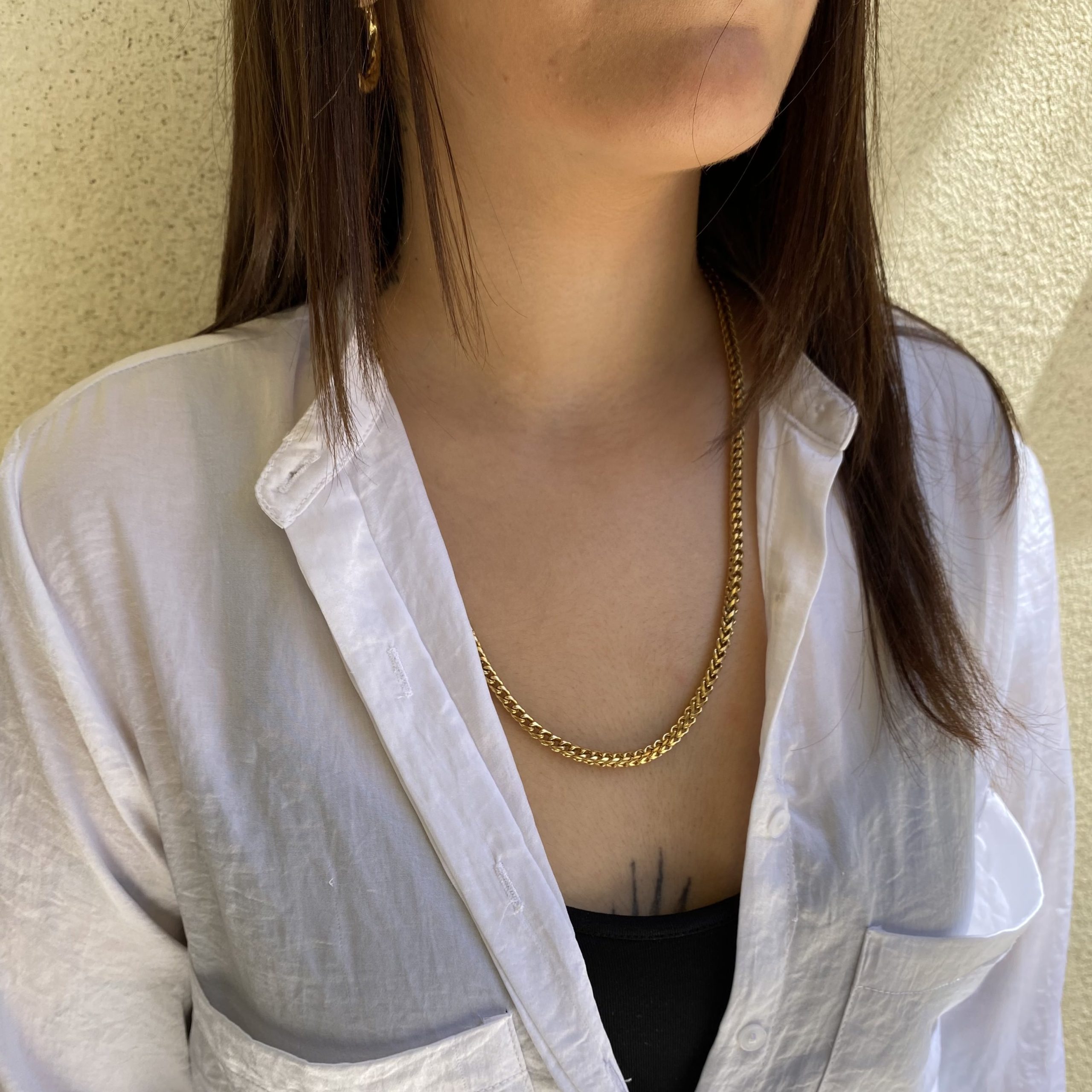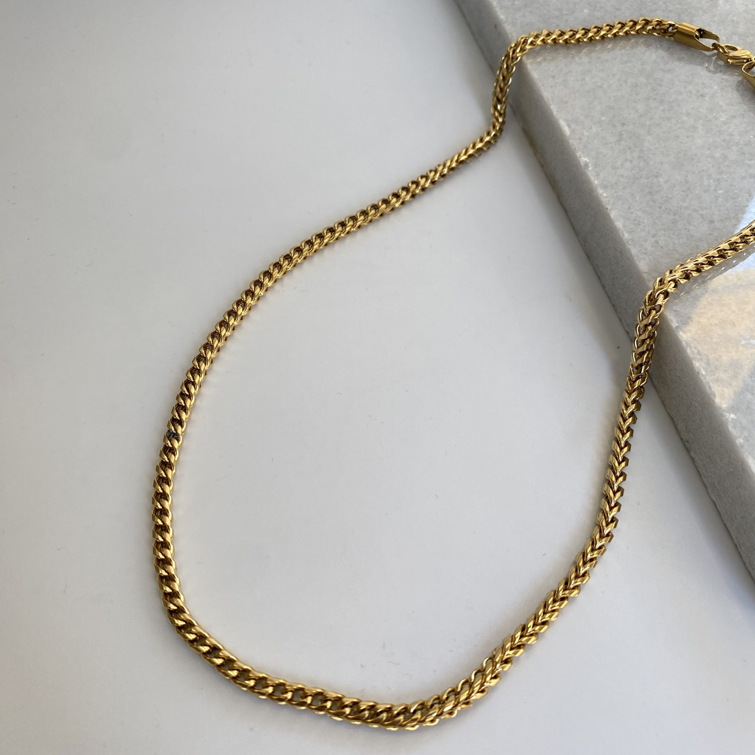 Αλυσίδα πλεξούδα απο ατσάλι επιχρυσωμένη. Μήκος αλυσίδας 50cm.