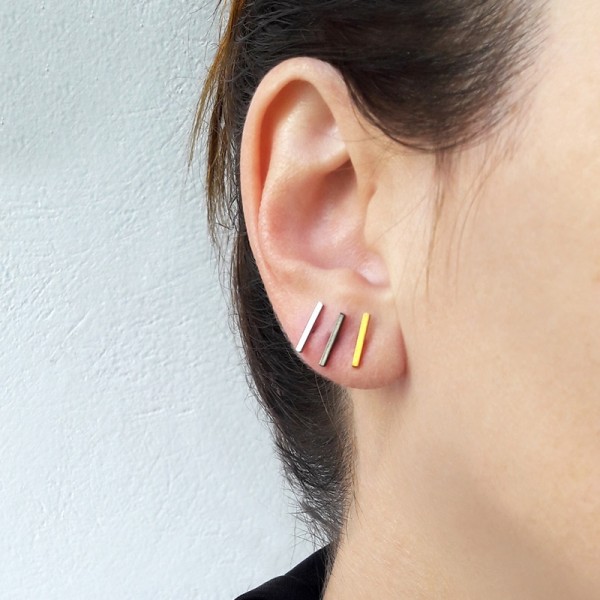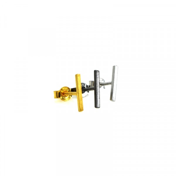 Χειροποίητο ασημένιο (925) σκουλαρίκι καρφωτό σε σχήμα γραμμή, με επιμετάλλωση επιρουθιωμένο σε ζευγάρι.