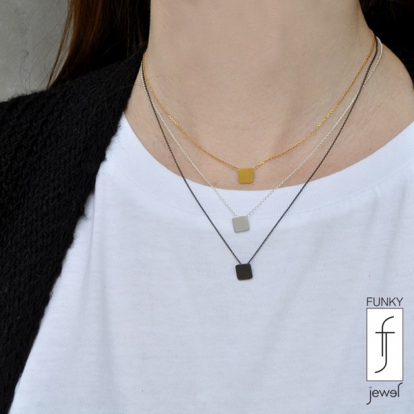 Χειροποίητο ασημένιο (925) κολιέ σε σχήμα τετράγωνο, με επιμετάλλωση επάργυρη. Μήκος αλυσίδας 40 cm.