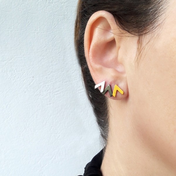 Χειροποίητο ασημένιο (925) σκουλαρίκι καρφωτό σε σχήμα με κατεύθυνση προς τα πάνω, με επιμετάλλωση επιρουθιωμένο σε ζευγάρι.