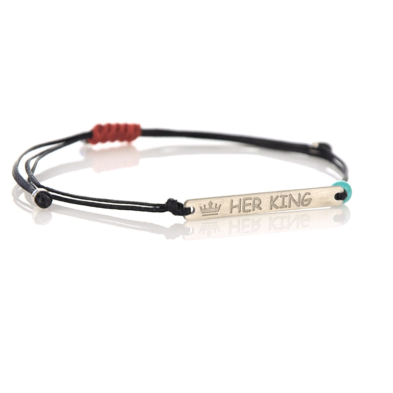 Χειροποίητο ασημένιο βραχιόλι ταυτότητα με χάραξη με κορδόνι και κούμπωμα μακραμέ, ρυθμιζόμενο. Υπέροχο δώρο για το ζευγάρι σου.