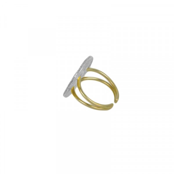 Χειροποίητο ασημένιο (925) δαχτυλίδι σε ιδιαίτερο σχήμα με ανάγλυφες ραβδώσεις, παλαδιούχο υπόστρωμα με επιμετάλλωση double 18Κ χρυσό ανοιχτό.