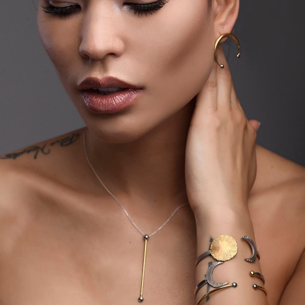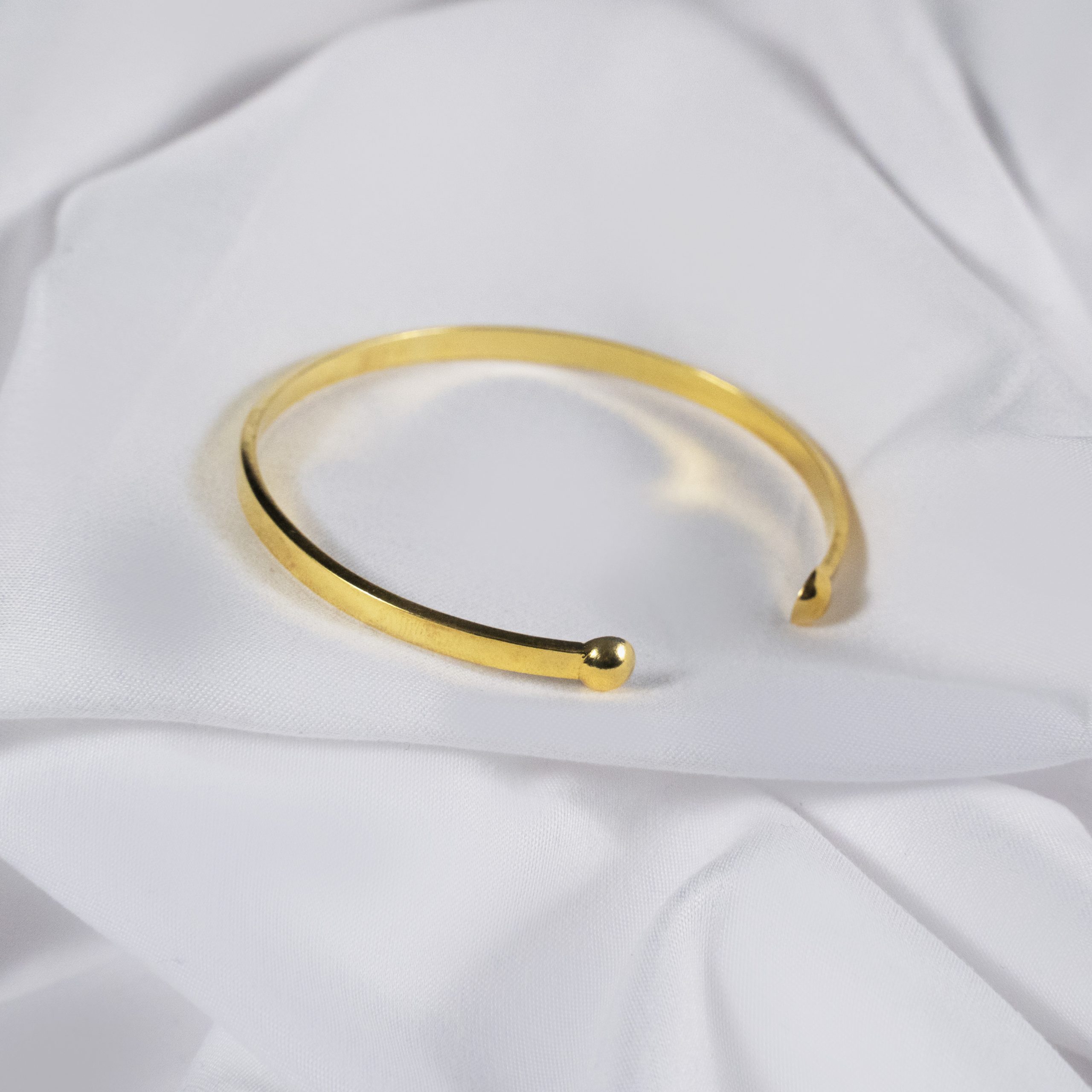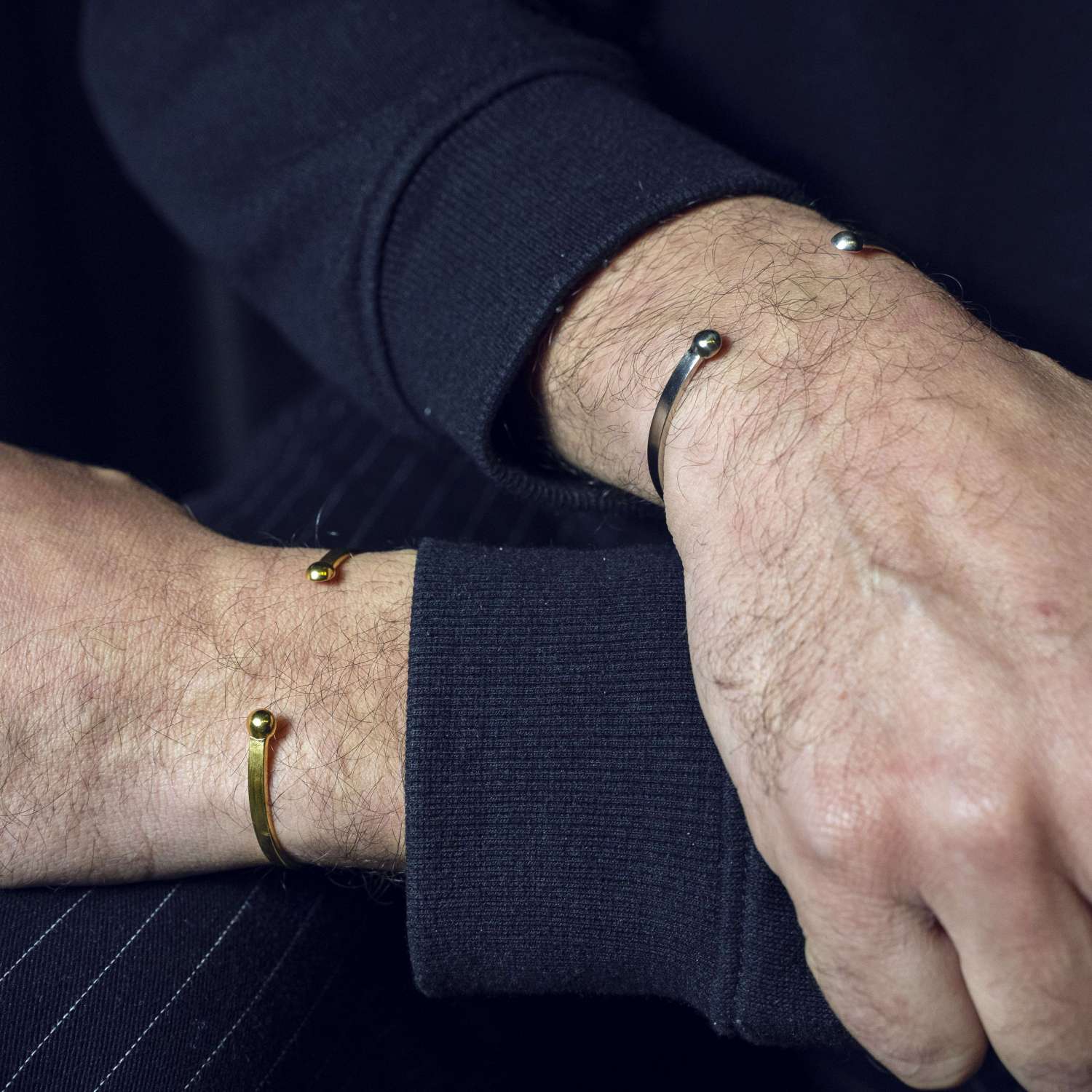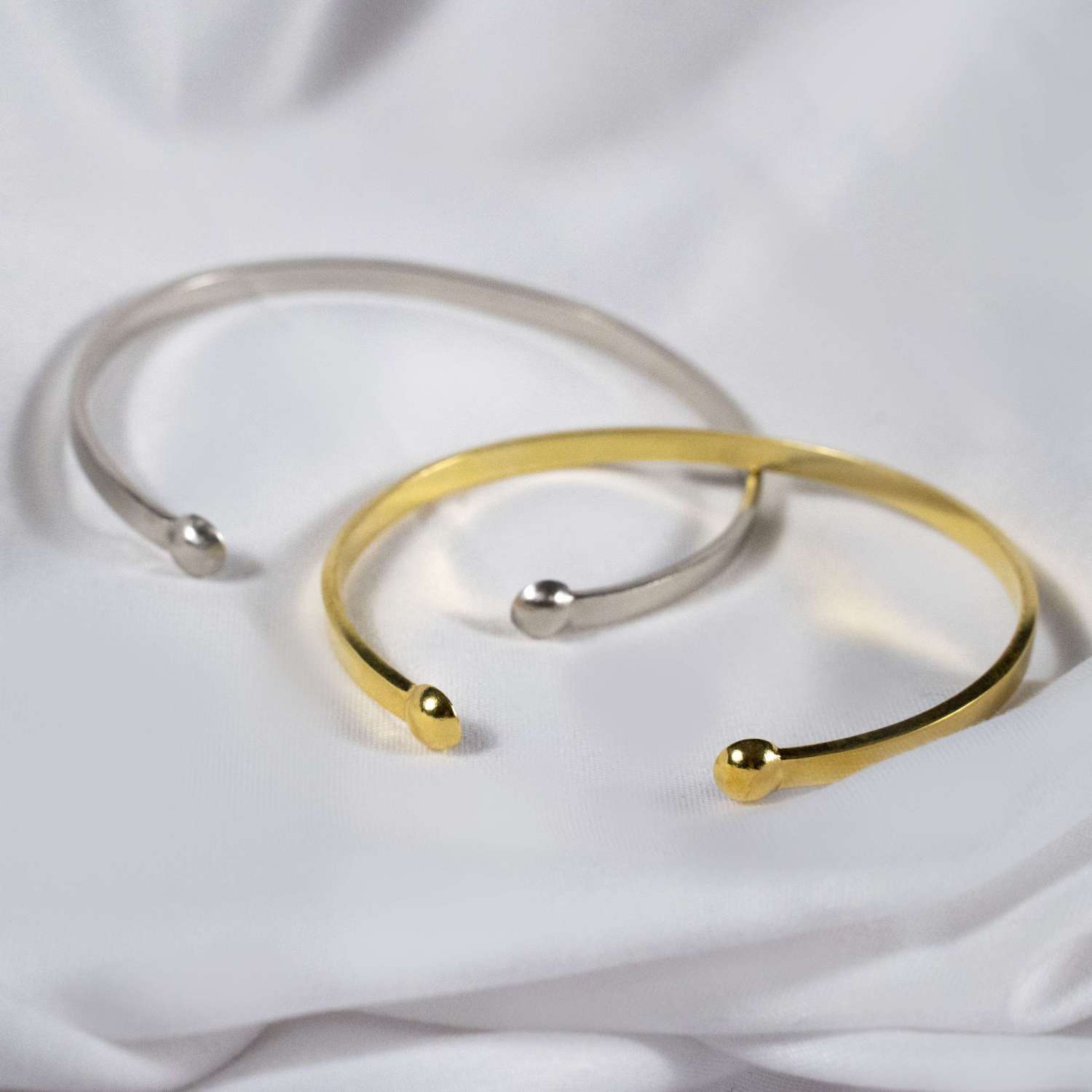 Χειροποίητο ασημένιο (925) ανοιχτό βραχιόλι. Αποτελείται από βάση επίχρυση. Επιμετάλλωση double 18Κ χρυσό και παλλαδιούχο υπόστρωμα.
