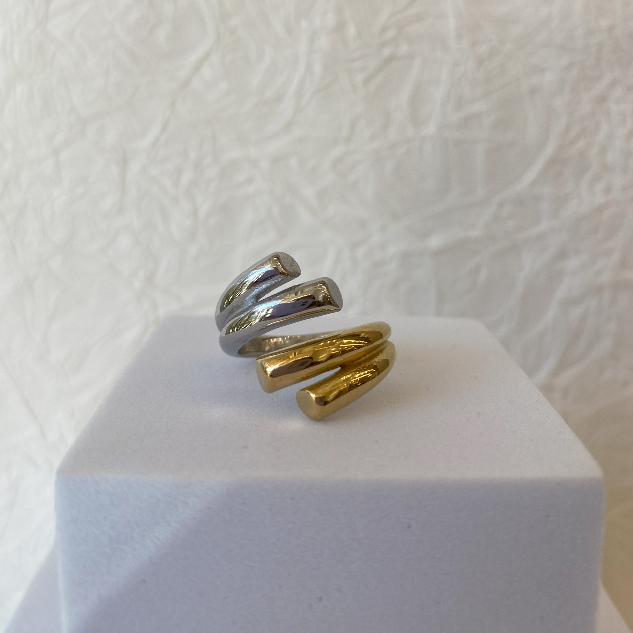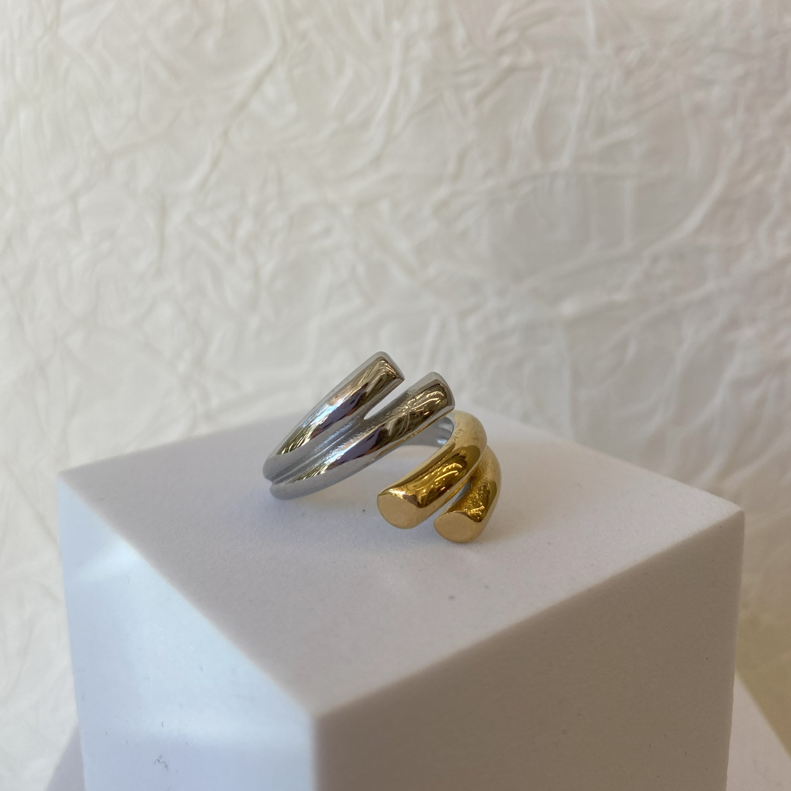 Δίχρωμο δαχτυλίδι σε ασημι και χρυσό απο ατσάλι.