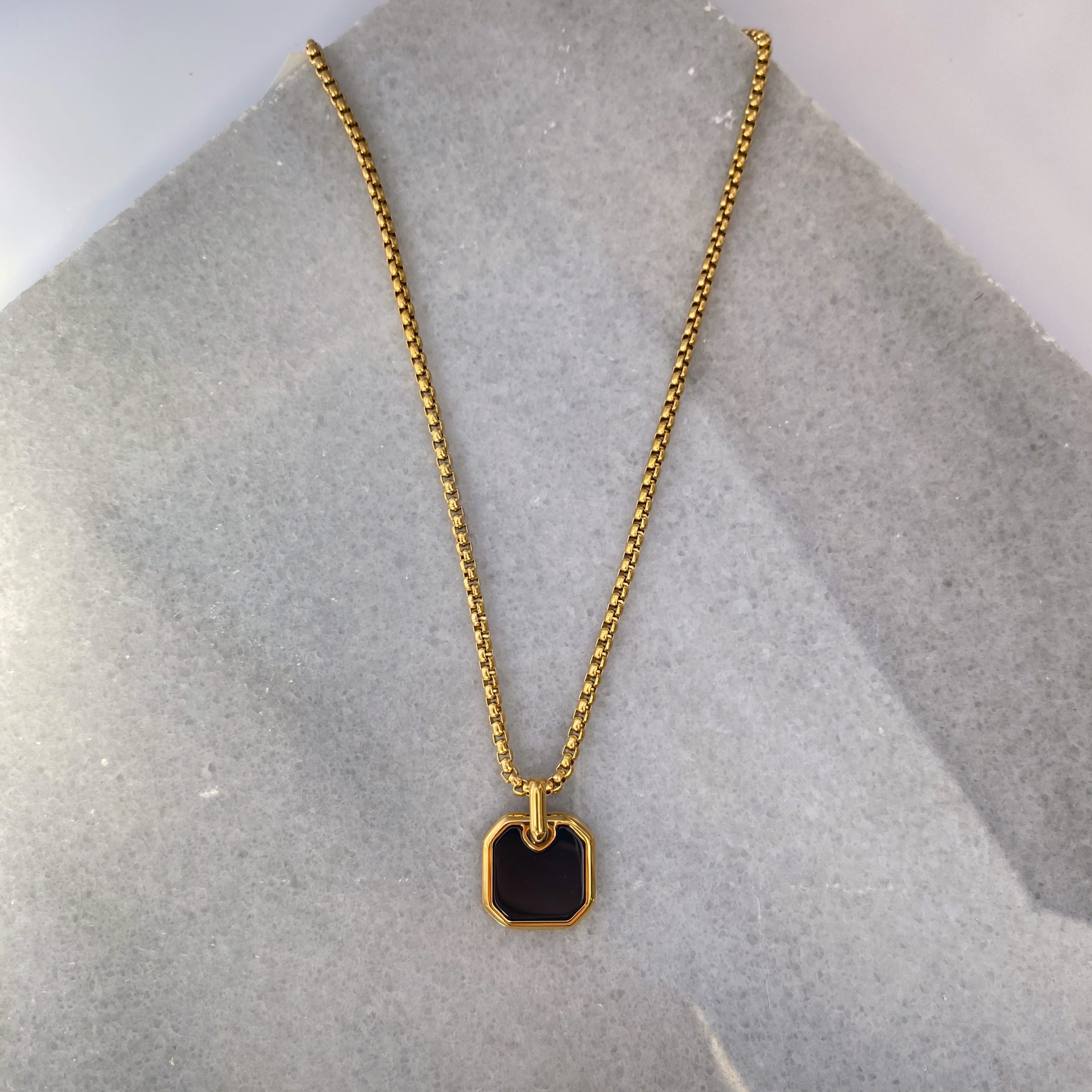 FJ ONYX SQUARE MINI GOLD NECKLACE