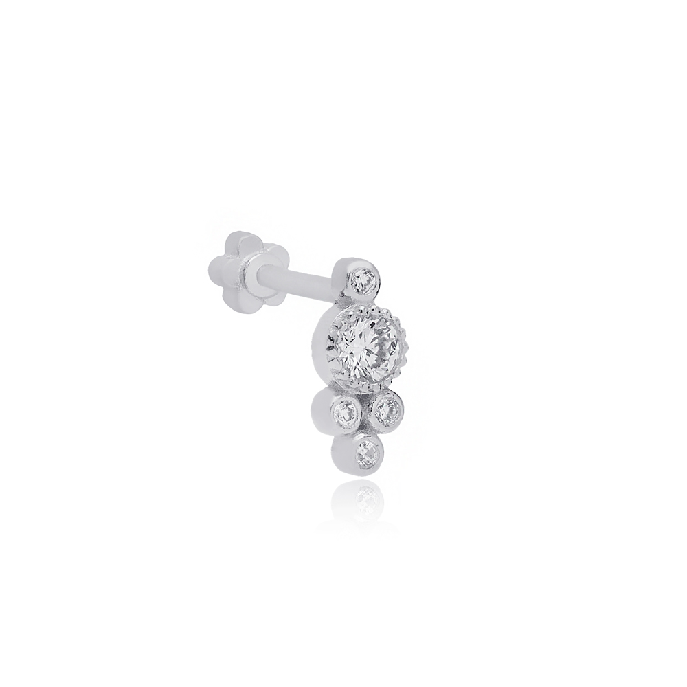 Χειροποίητο σκουλαρίκι απο ασήμι 925* με λευκά ζιργκόν και με κούμπωμα που βιδώνει.