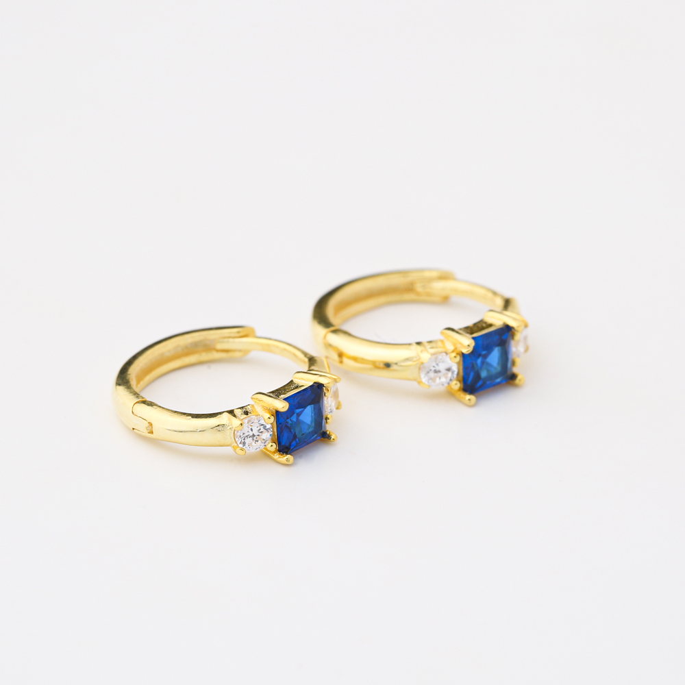 FJ SAPPHIRE SQUARE GOLD EARRINGS