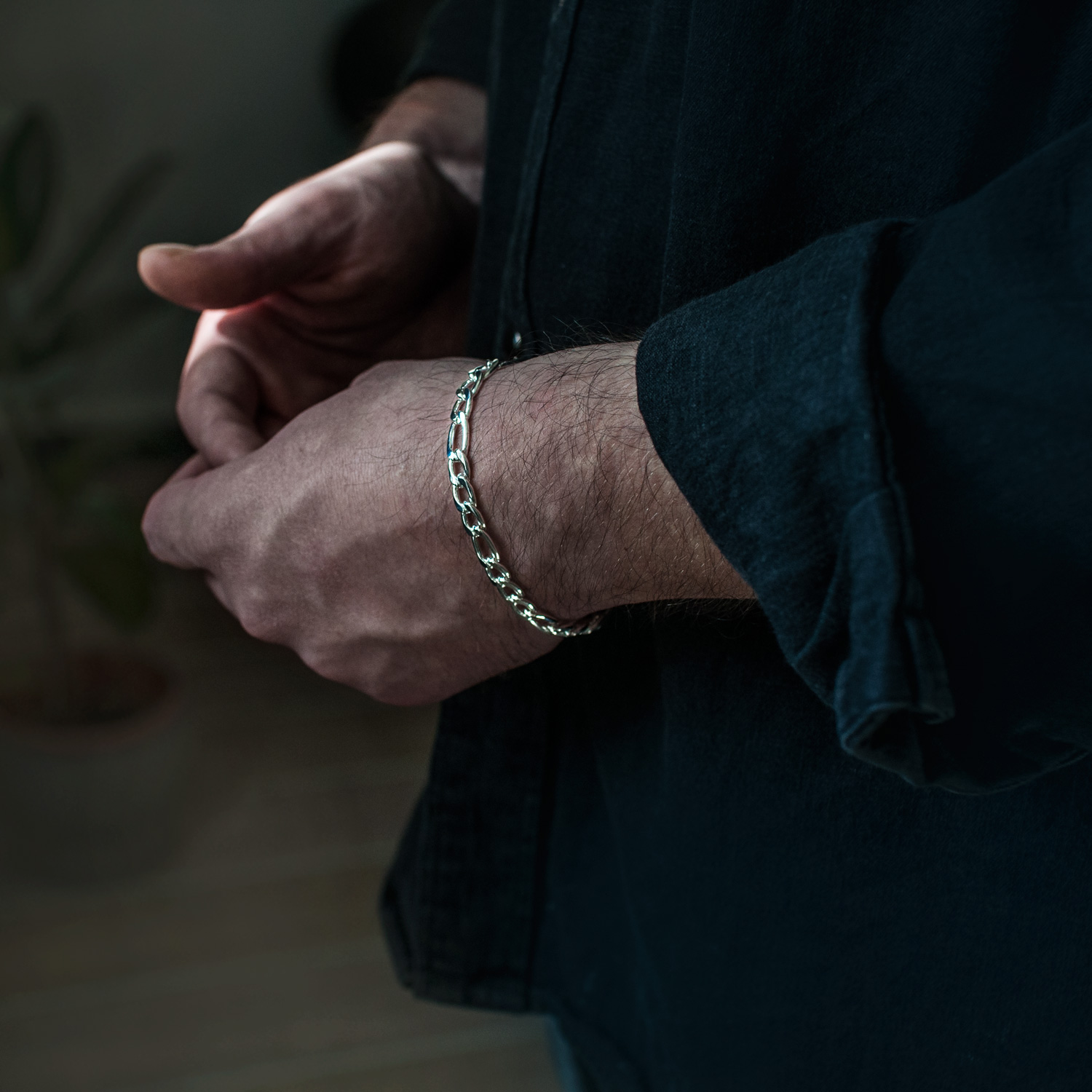 Ατσάλινο βραχιόλι αλυσίδα σε ασημί χρώμα.