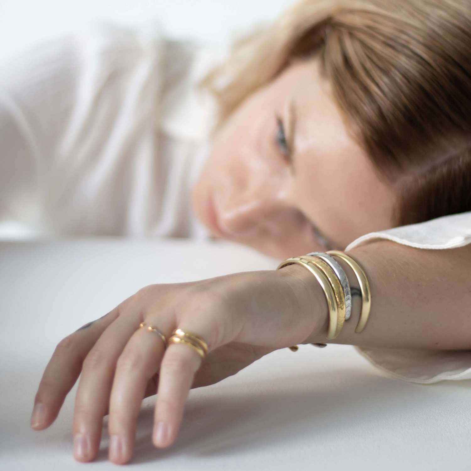 Handmade silver 925 bracelet, with simple design. Goldplated, size adjustable.Χειροποίητη ασημένια 925 χειροπέδα, σε απλό σχέδιο. Επίχρυση, μέγεθος που αυξομειώνεται.