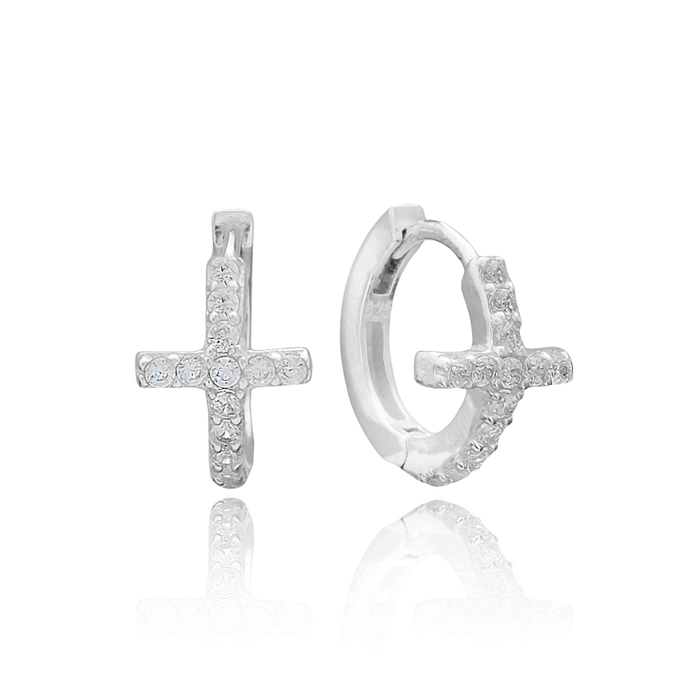 Χειροποίητα κρικάκια απο ασήμι 925* με σχήμα σταυρού και λευκά ζιργκόν.
