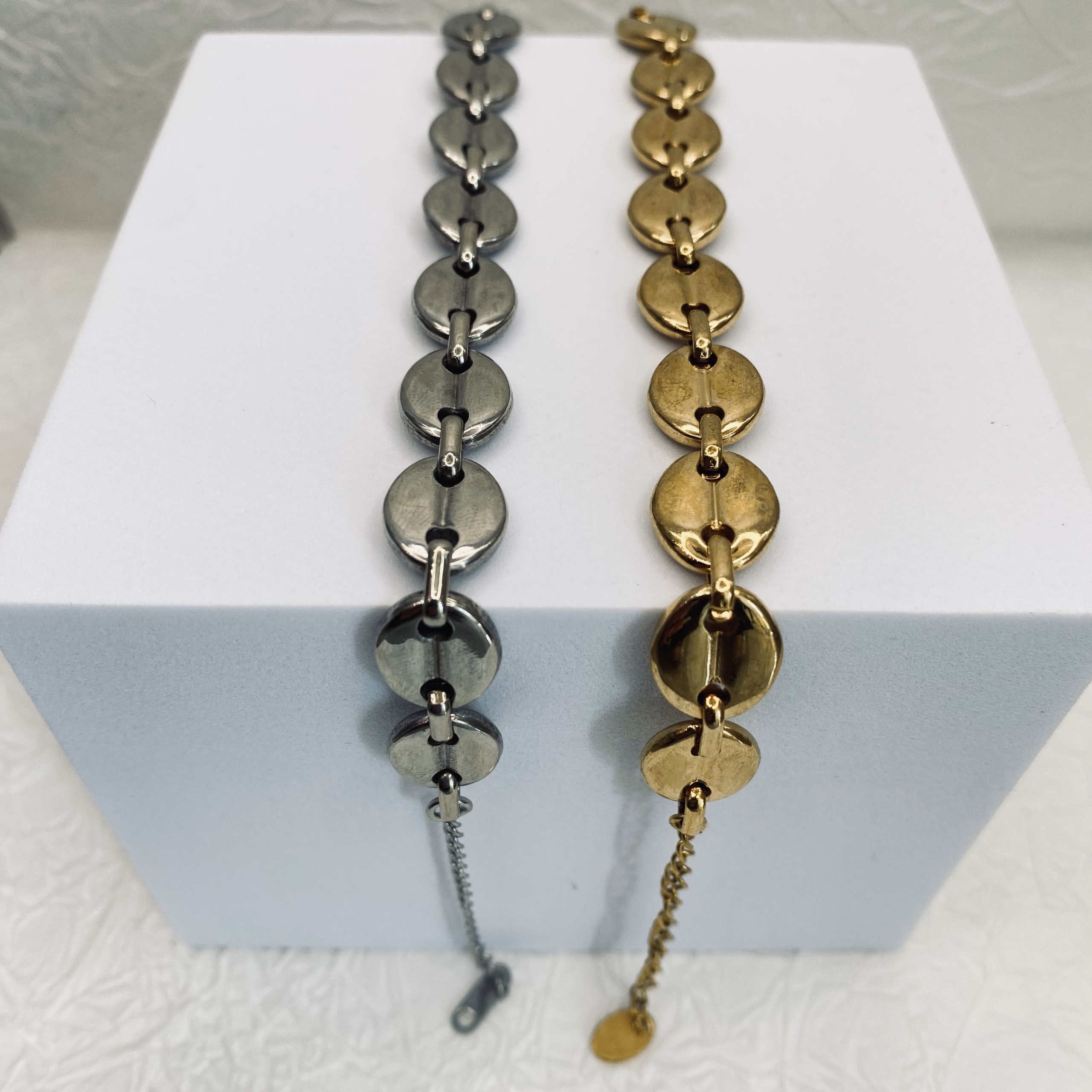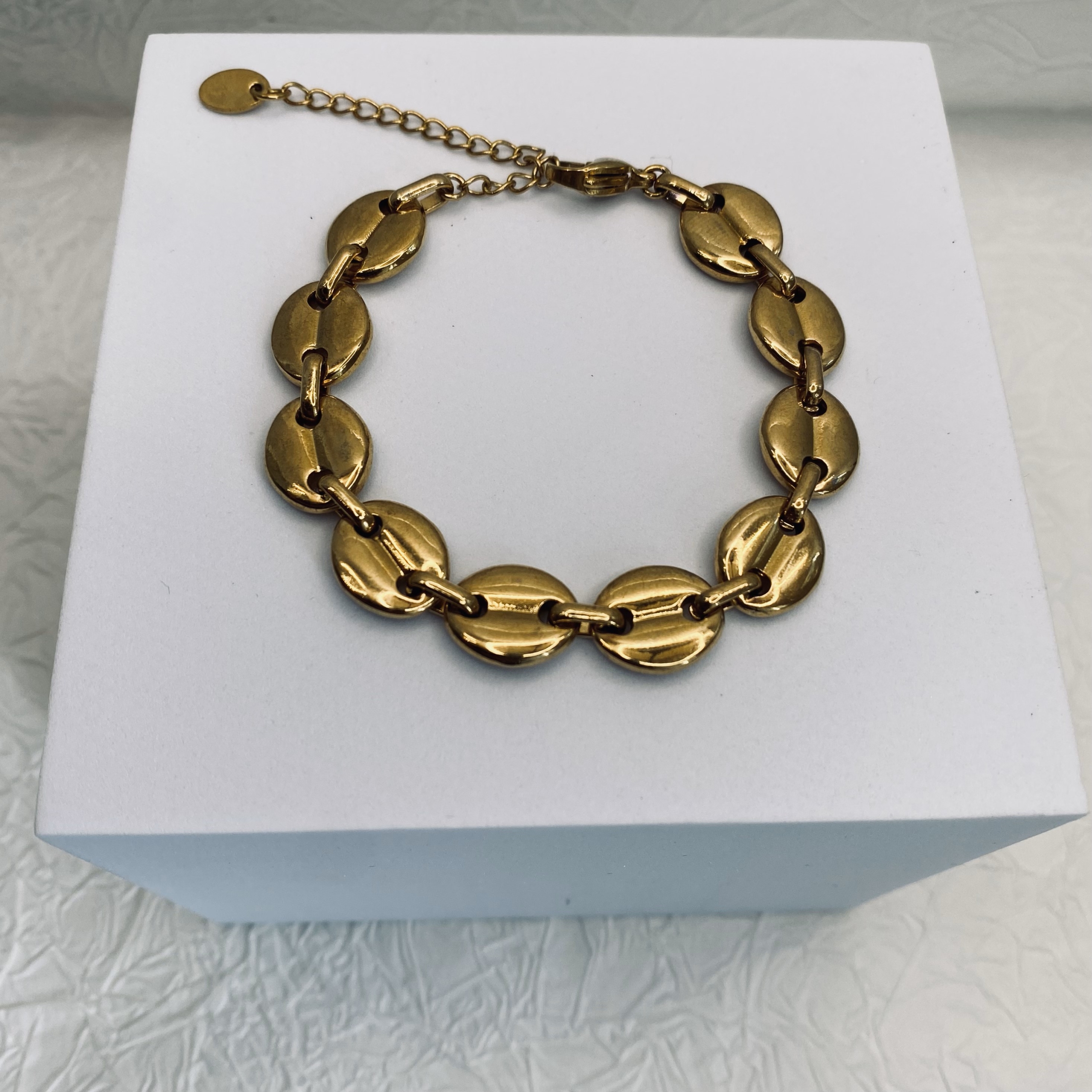 Βραχιόλι με ατσάλινη αλυσίδα επιχρυσωμένη σε σχέδιο θήτα.
