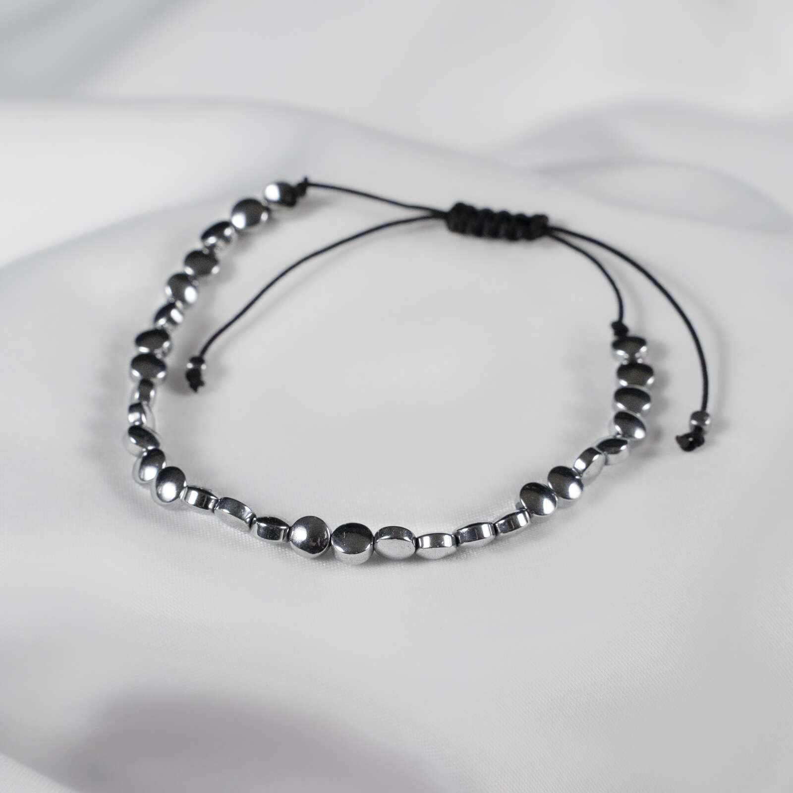 Χειροποίητο unisex βραχιόλι με πέτρες αιματίτη σε ασημί χρώμα. Κούμπωμα μακραμέ. Μέγεθος ρυθμιζόμενο.