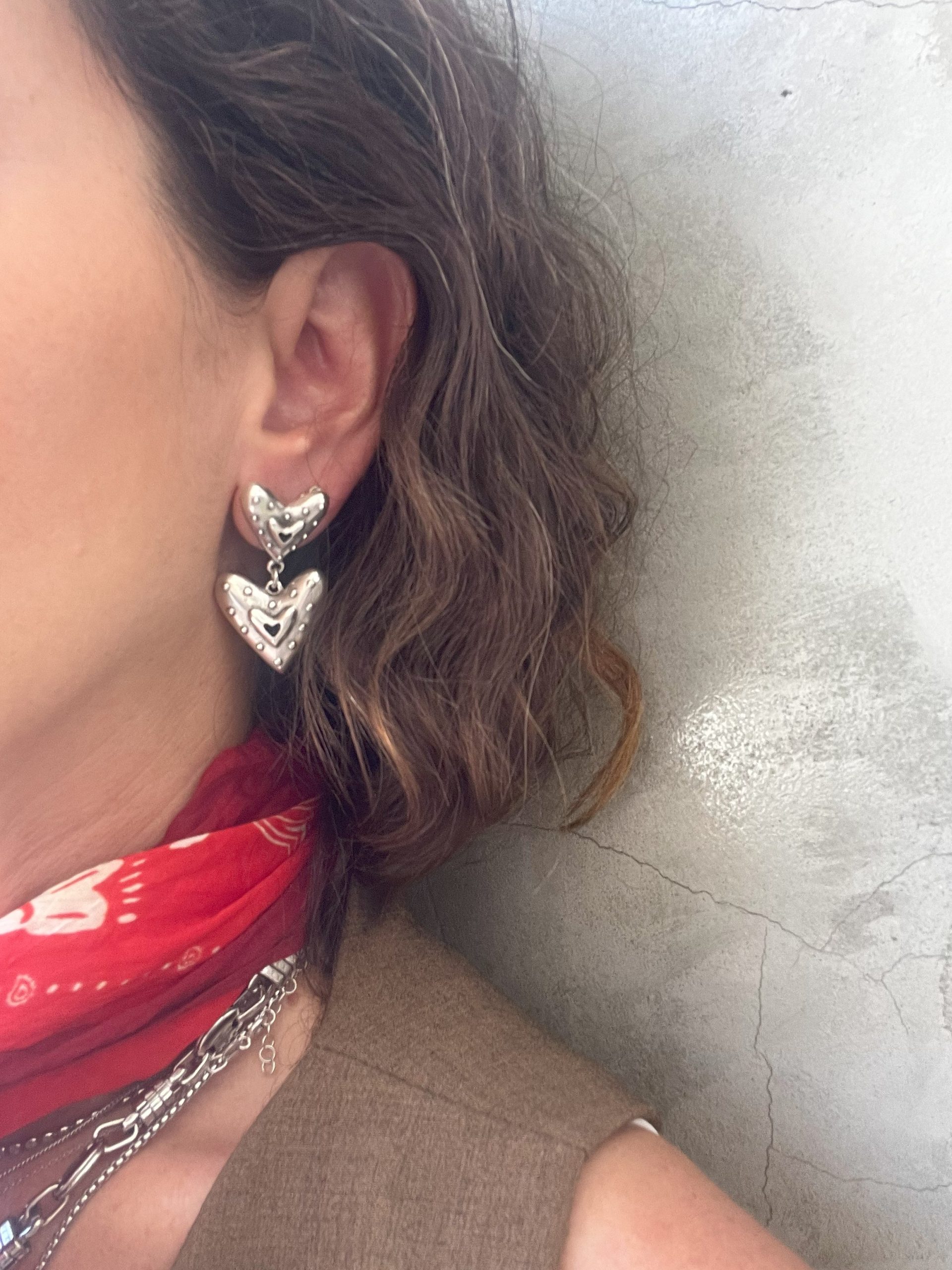 Χειροποίητο σκουλαρίκι με καρδιές.