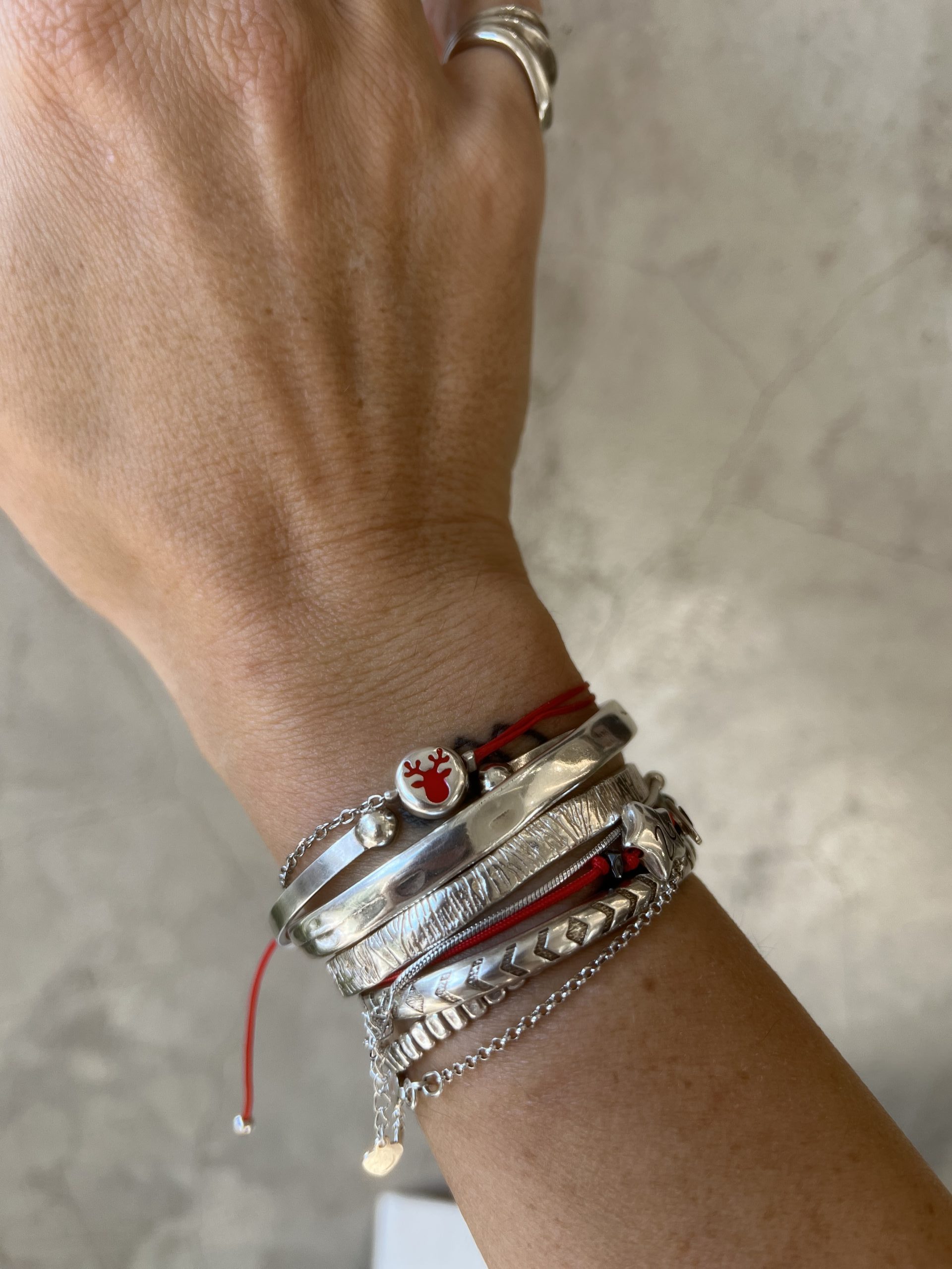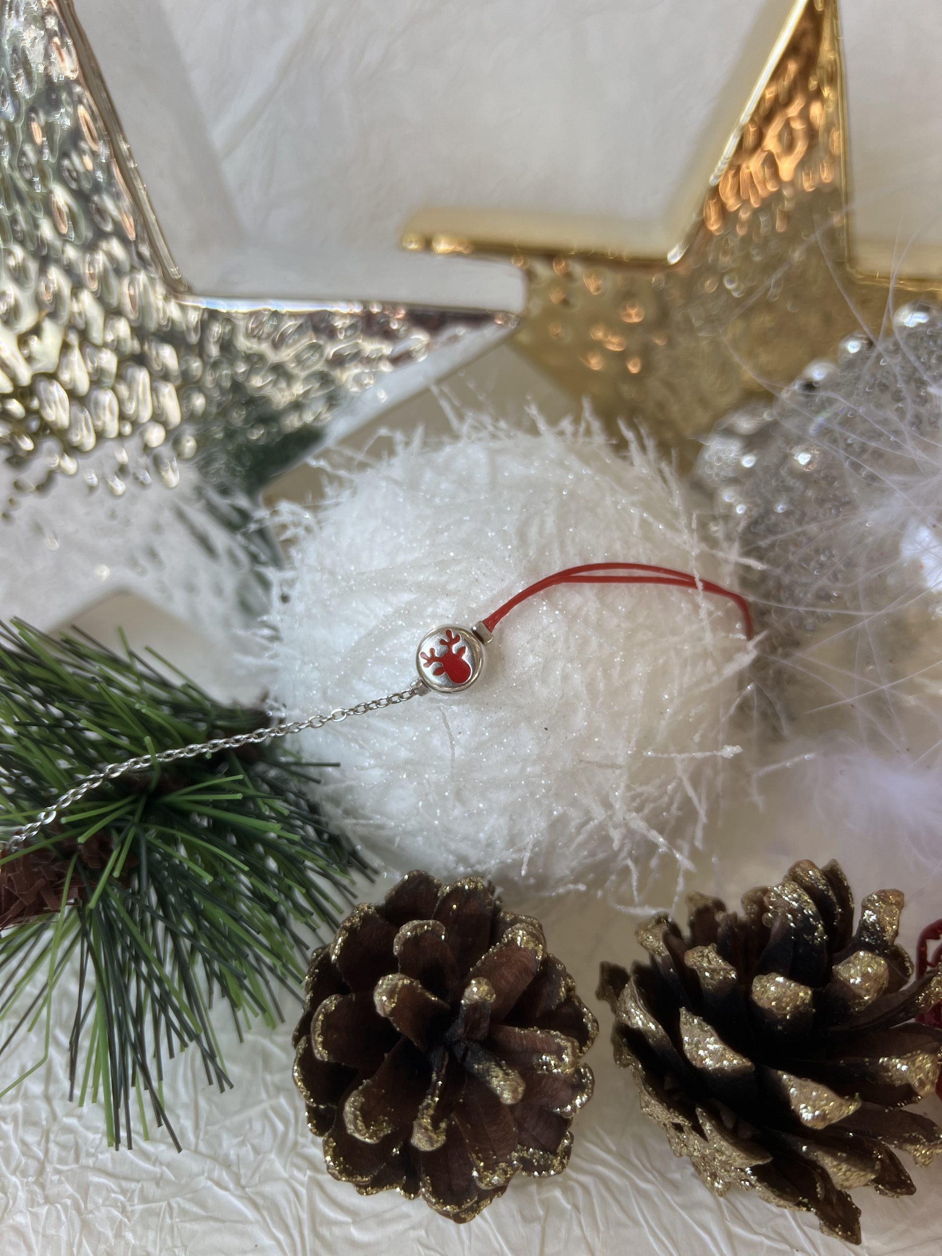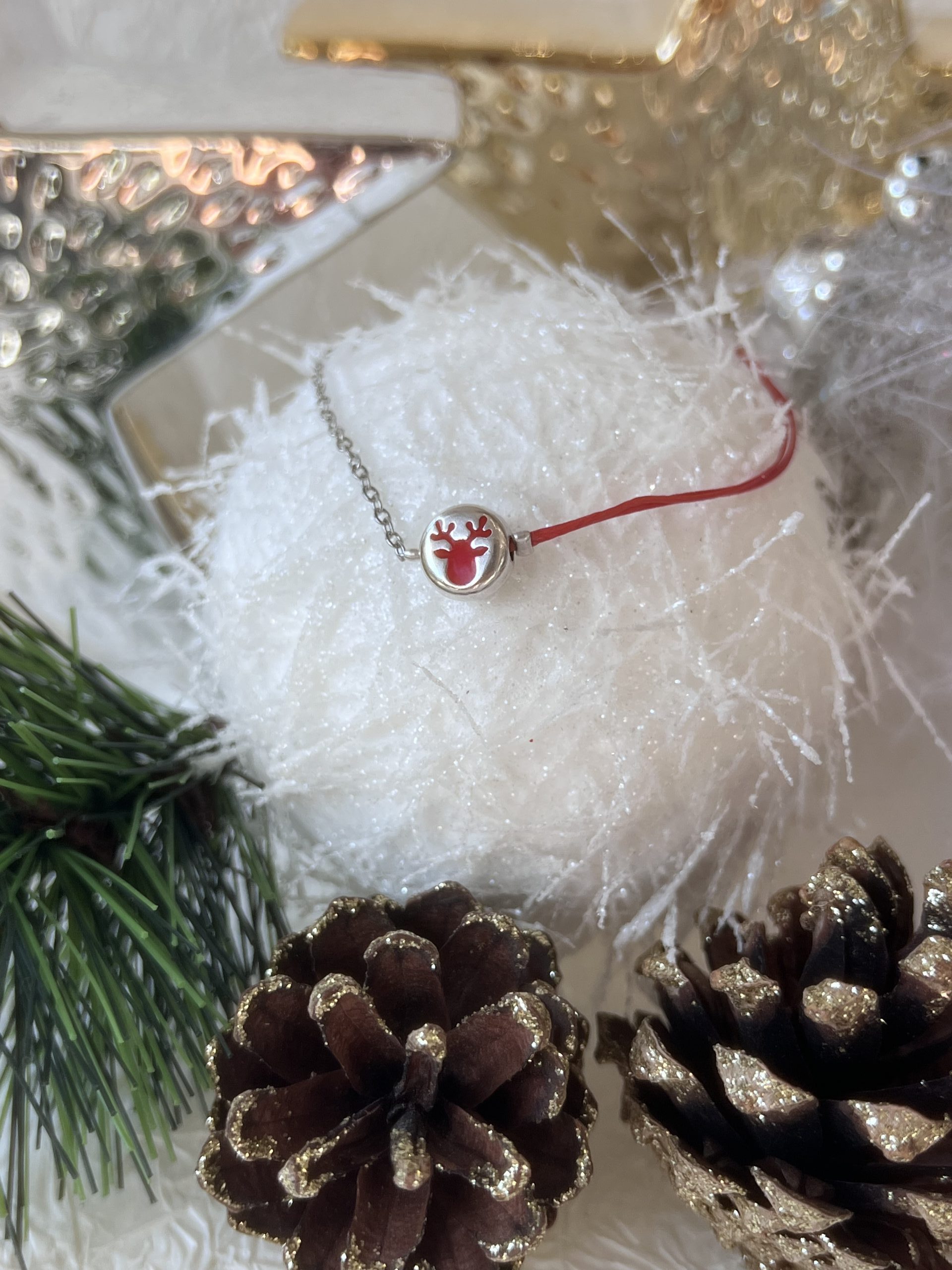 Χειροποίητο βραχιόλι με αλυσίδα και κορδόνι και στοιχείο ταρανδάκι με σμάλτο.