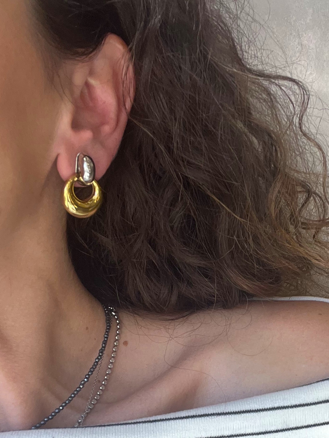 Ιδιαίτερο σκουλαρίκι απο ατσάλι, δίχρωμο.