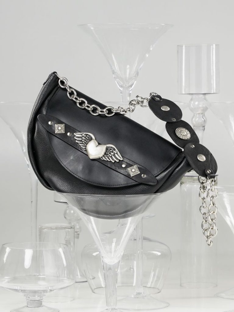Χειροποίητη δερμάτινη τσάντα με μεταλλικά στοιχεία.