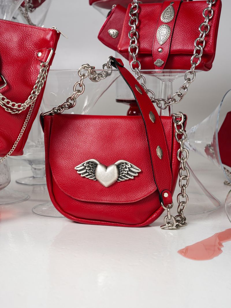 Χειροποίητη δερμάτινη τσάντα με μεταλλικά στοιχεία.