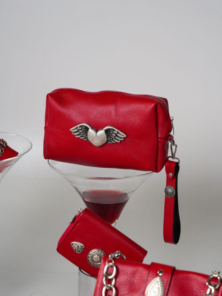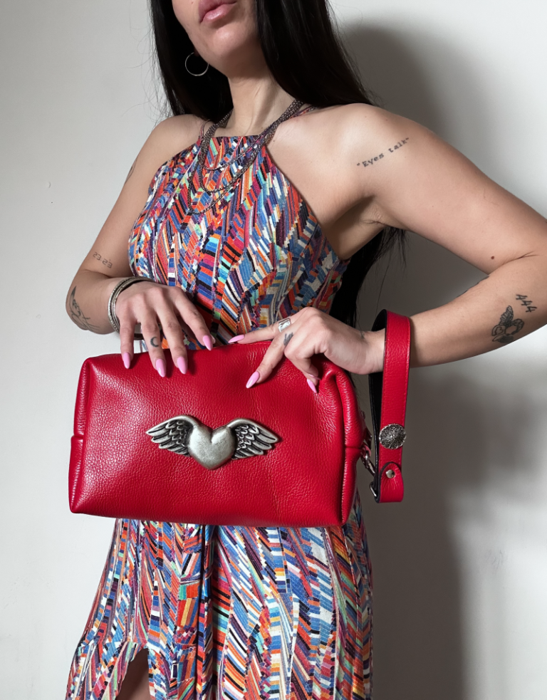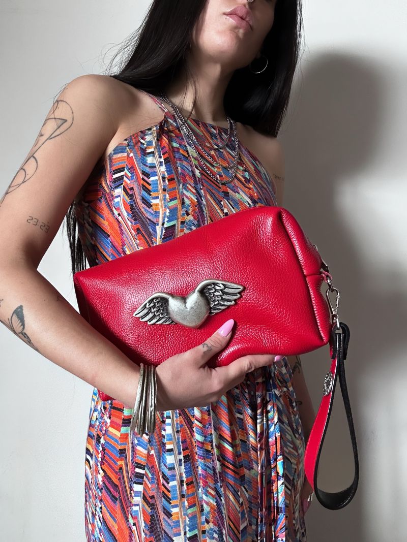 Έχει δύο βάσεις που αν θέλετε μπορείτε να του προσθέσετε λουράκι ή αλυσίδα για να φορεθεί και σαν τσάντα ώμου ή χιαστί.