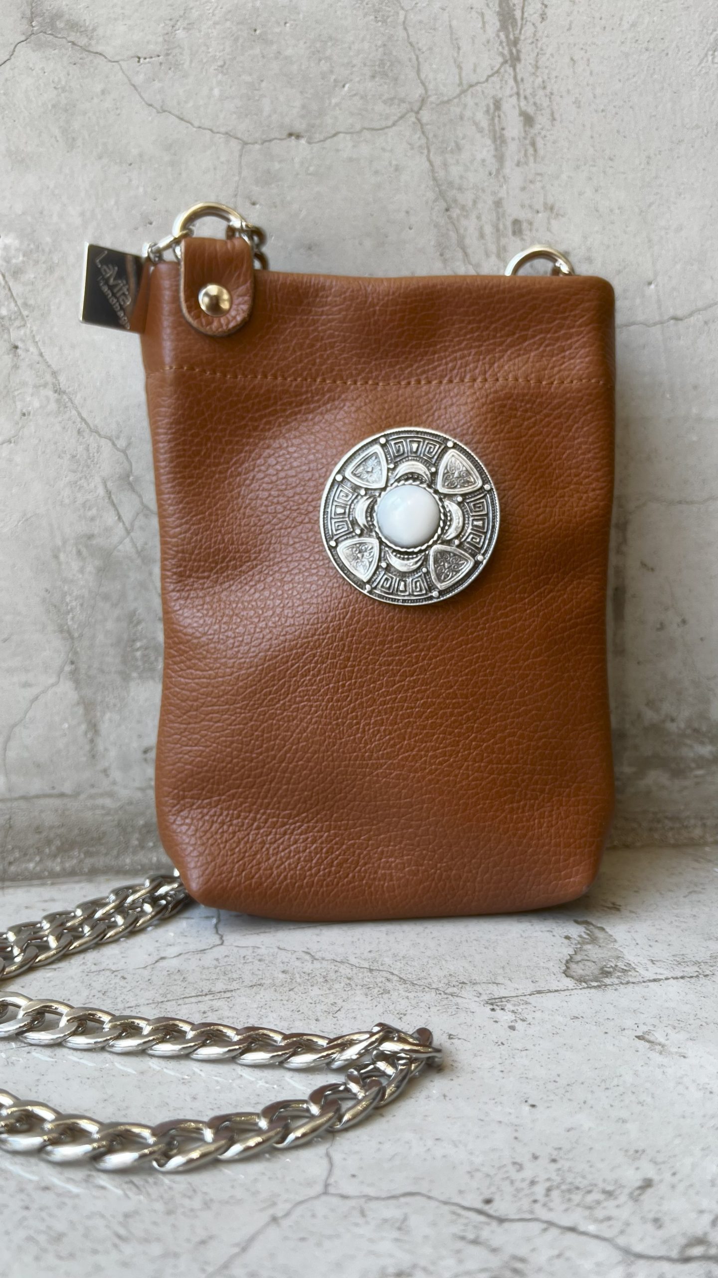 Δερμάτινο χειροποίητο τσαντάκι LA VITA με μεταλλικά αξεσουάρ