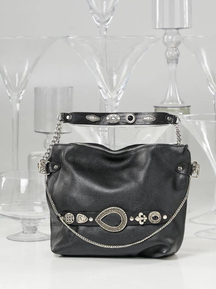 Δερμάτινο χειροποίητο τσαντάκι με μεταλλικά αξεσουάρ.