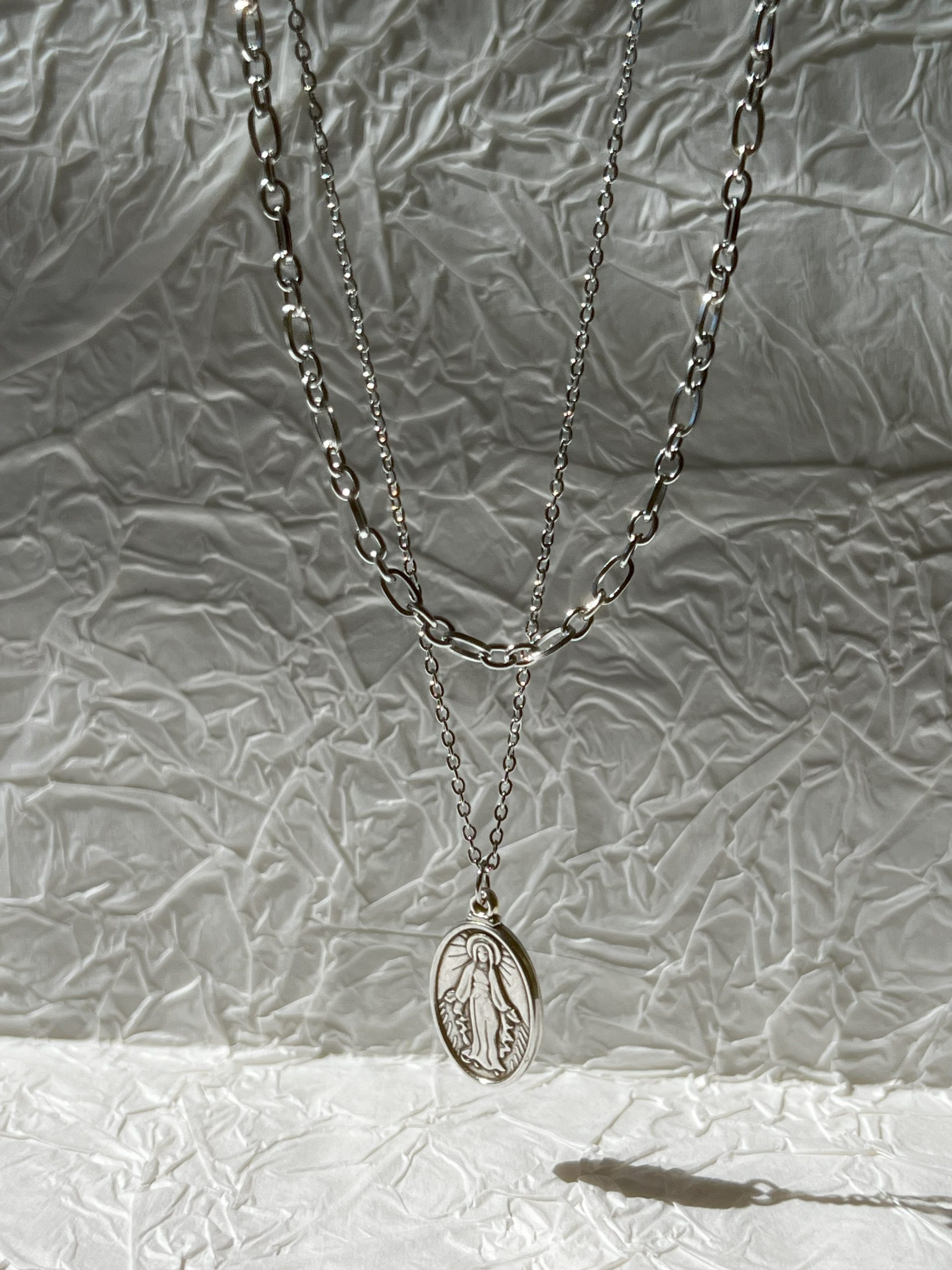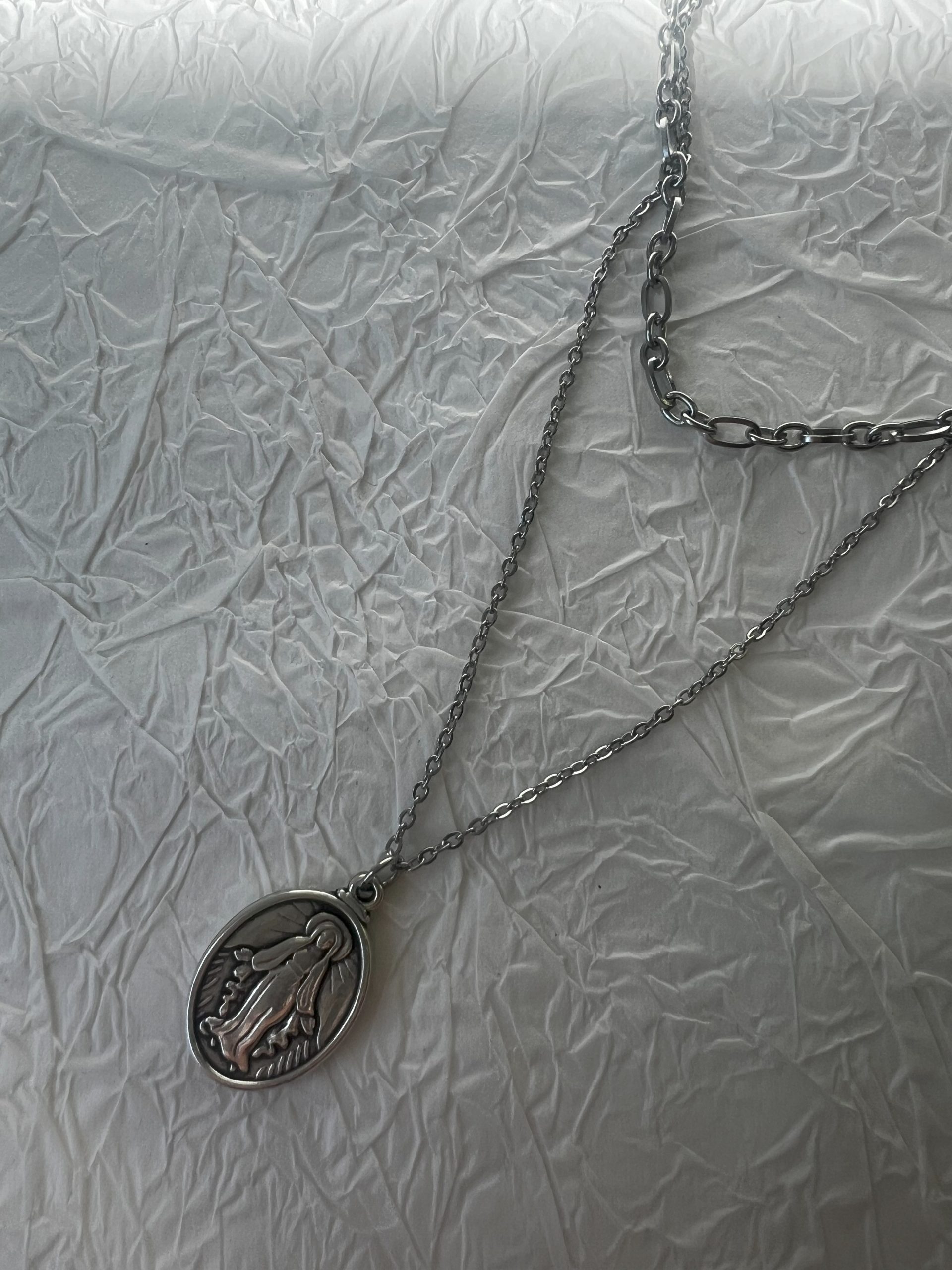 Διπλό ατσάλινο κολιέ με αλυσίδες και στοιχείο απο ορείχαλκο.