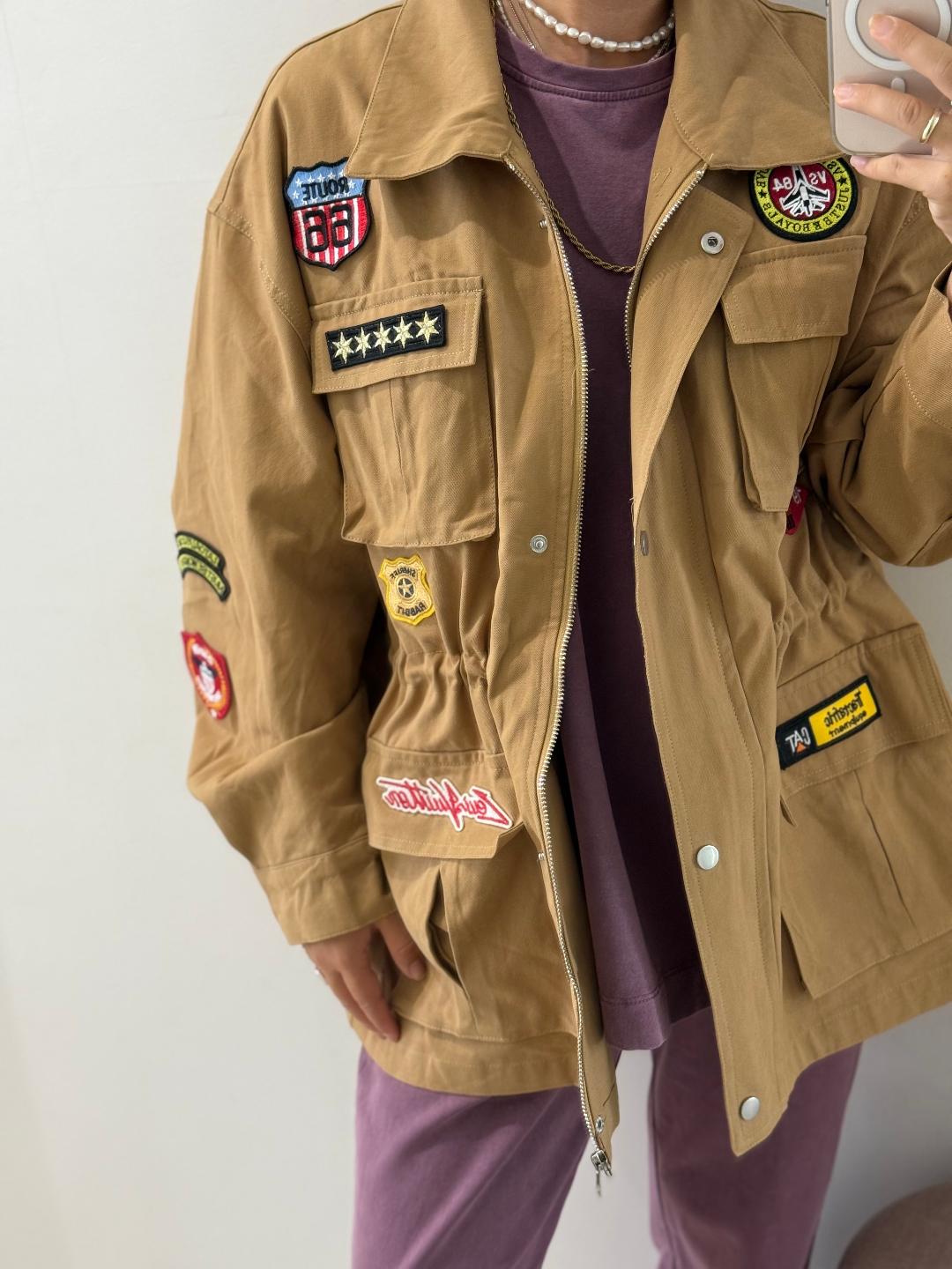 Oversized τζήν στρατιωτικο μπουφάν με τσέπες και patches.