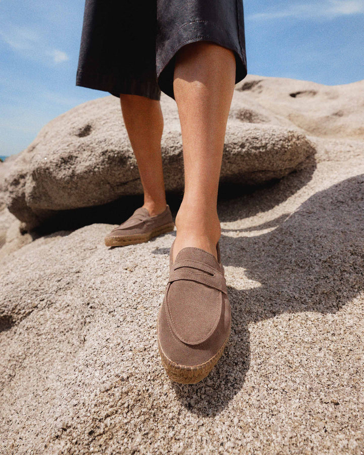 Εσπαντρίγιες σε στυλ μοκασίνι από δέρμα και σόλα από γιούτα.
