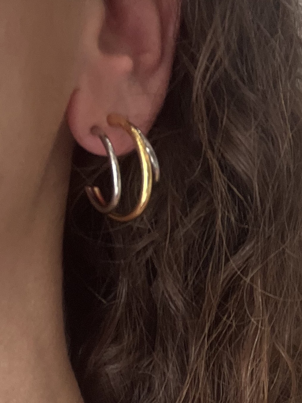 Ιδιαίτερο σκουλαρίκι απο ατσάλι, δίχρωμο.